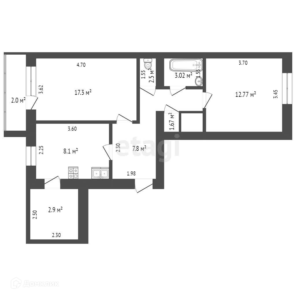 Общая площадь 52.06 м2