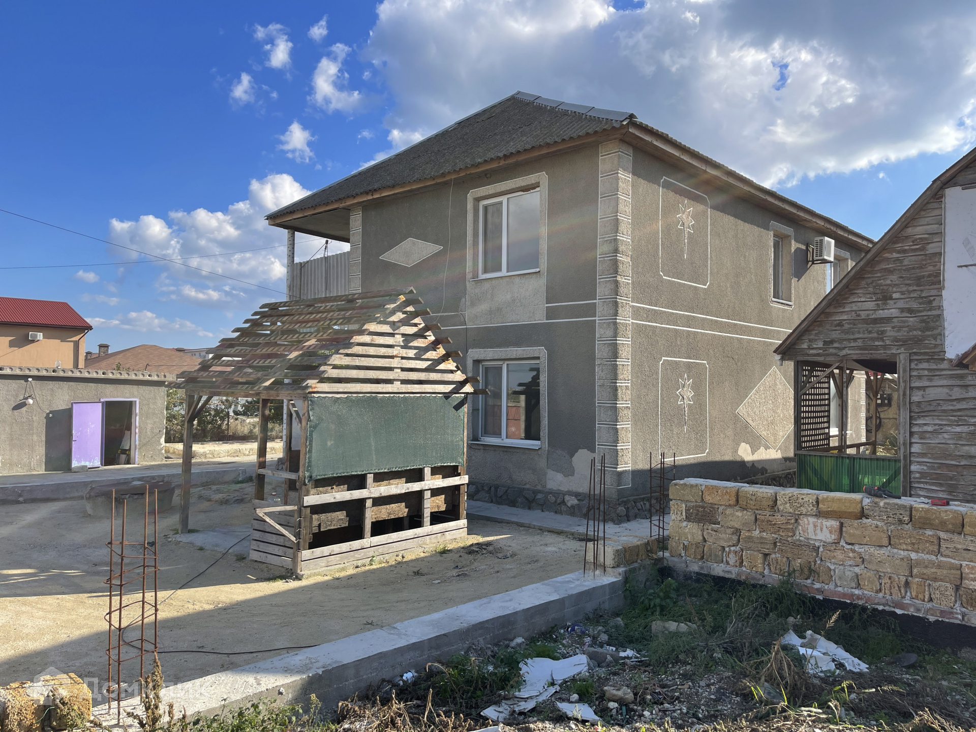Первый дом жилой 138,3 кв м. Два этажа. Документы РФ. Кадастровый номер  90:24:060101:1658.