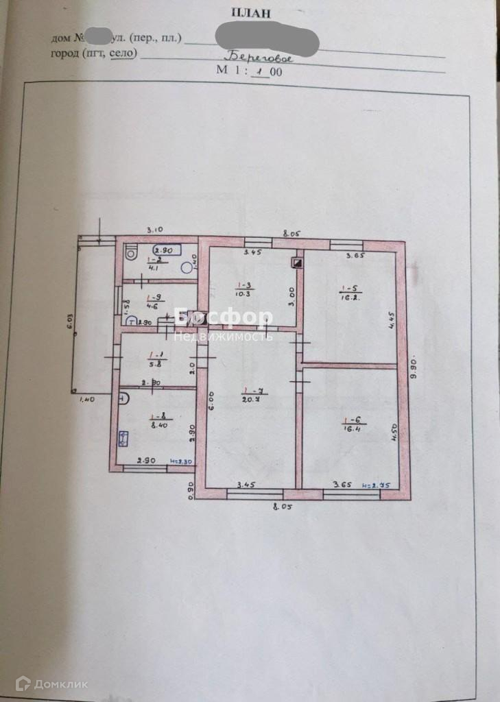 1-этажный дом, 86.5 м2, на продажу в селе Береговом, улица Комарова, 49