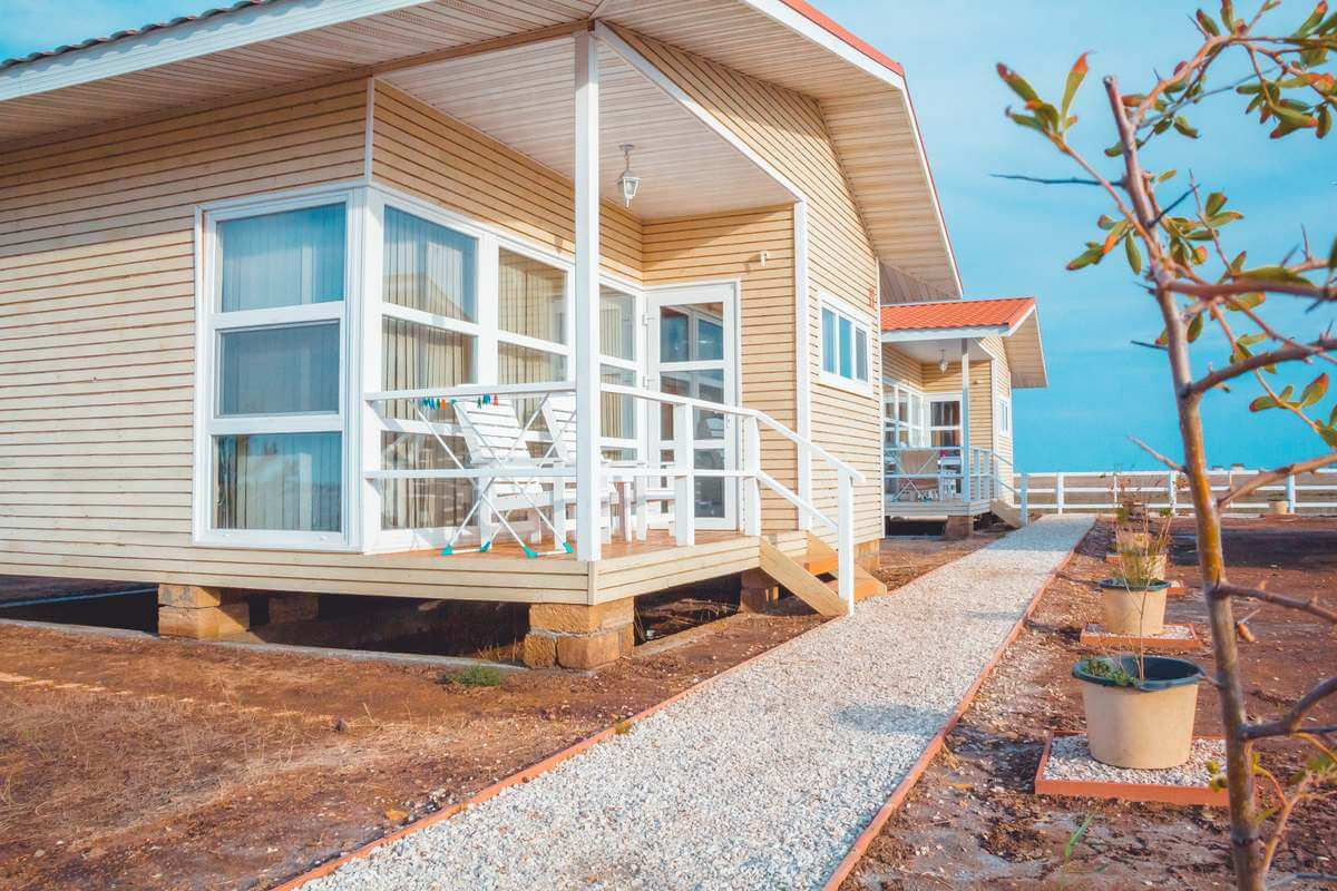 На участке возможно возведение каркасных некапитальных или модульных домов с целью отдыха образец как на фото (целевое назначение земли - Ведение личного подсобного хозяйства на полевых участках).