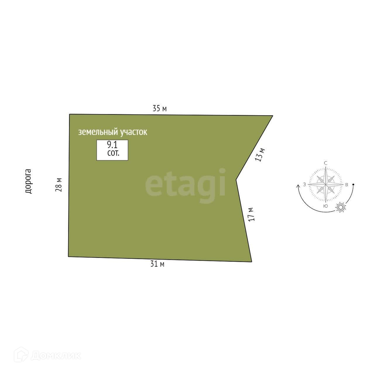 Площадь участка 9.1 сот.