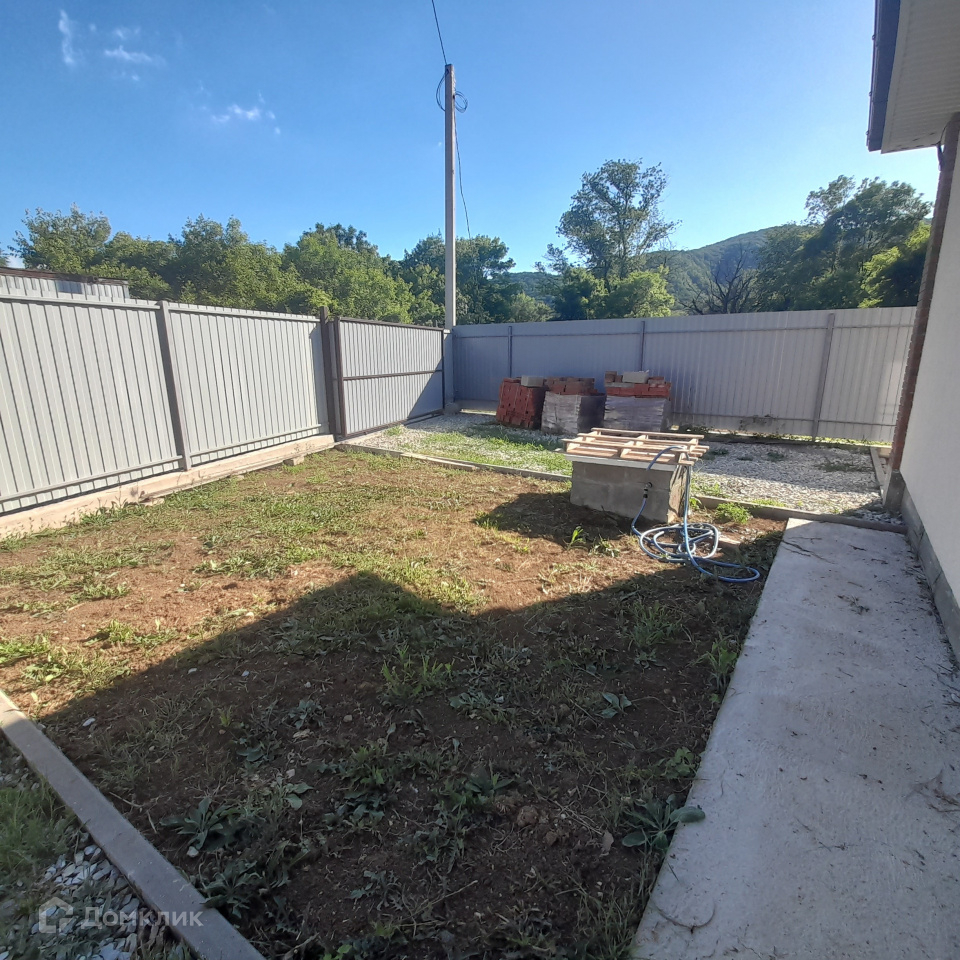 Участок -3,14 сот, ровный,огорожен современным забором, растет фундук. За домом практически сразу идет лесок и выход по живописной дорожке к реке Пшада - излюбленном месте отдыха в зной. В реке ловится рыбка, есть залежи  лечебной голубой глины.