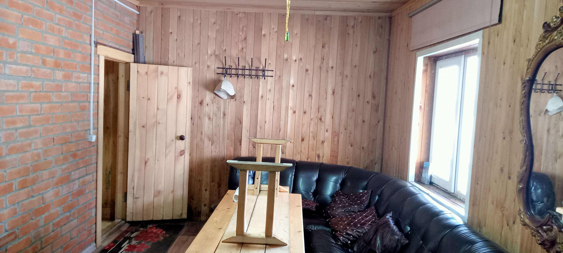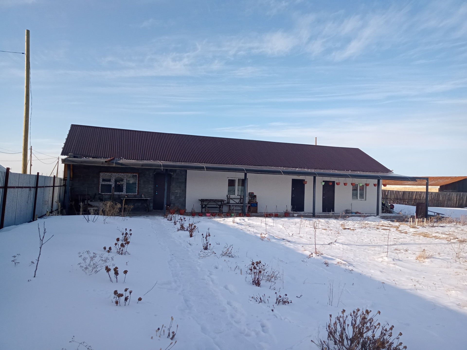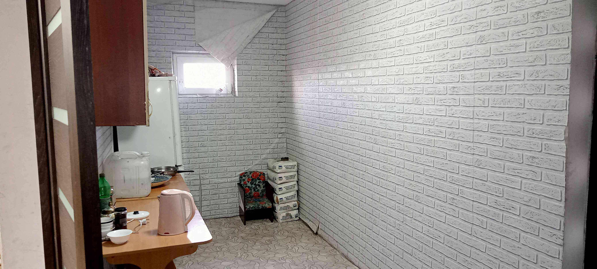 2 большие комнаты и кухня. В одной комнате тёплые полы, подведена водосточная труба для санузла, осталось постелить линолеум, натянуть потолок, обои поклеить; в доме установлены окна ПВХ, пол - линолеум, натяжной потолок. Всё что есть в доме остаётся.