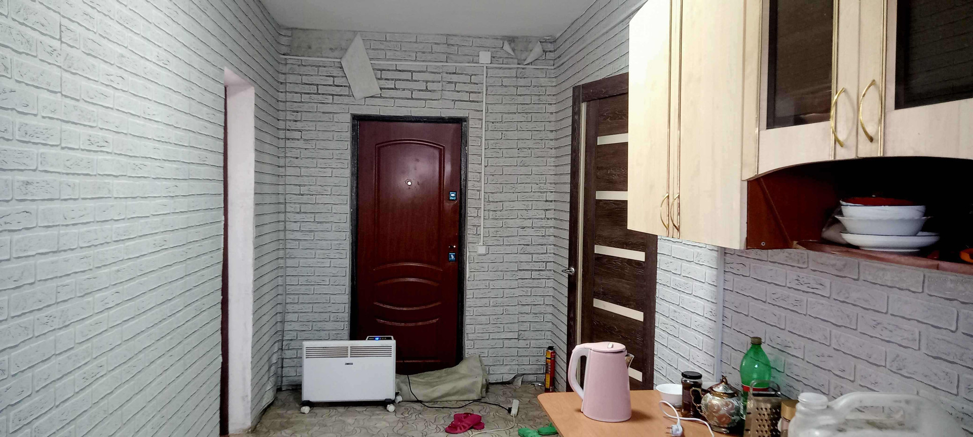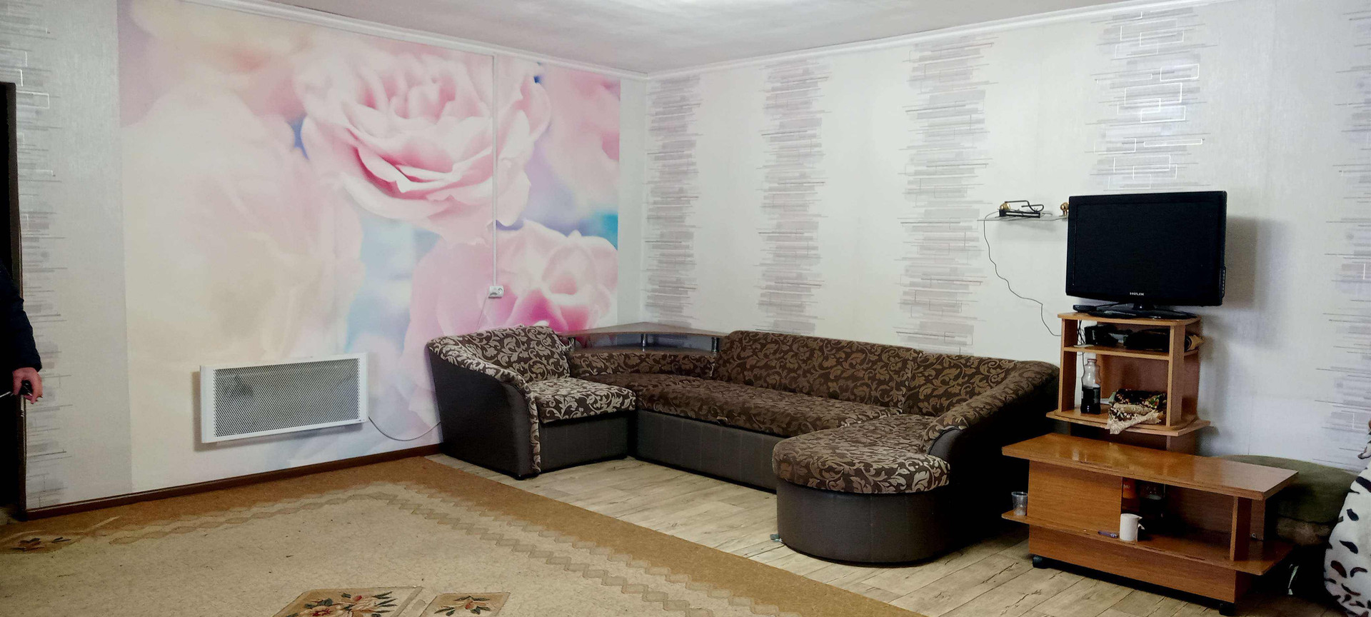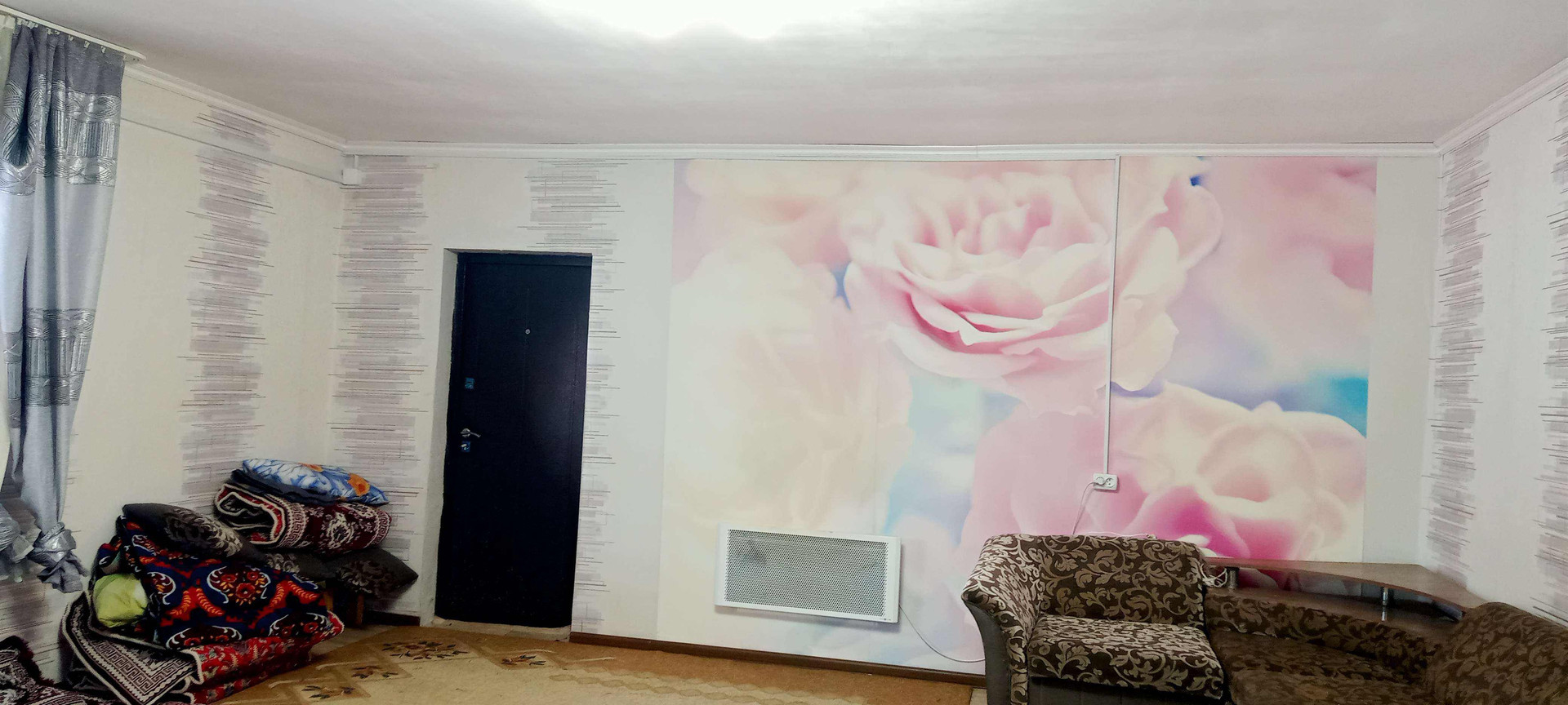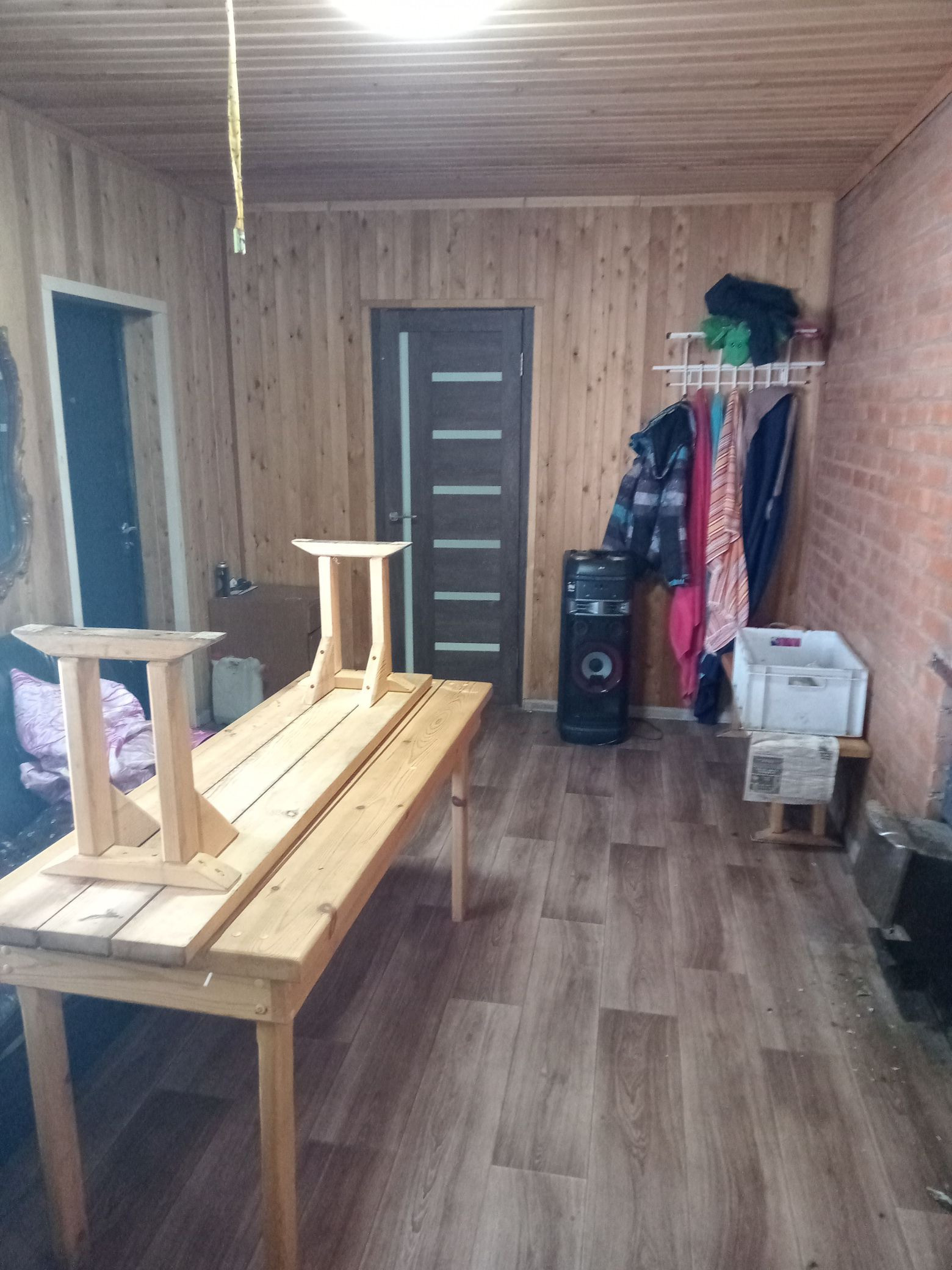 2 большие комнаты и кухня. В одной комнате тёплые полы, подведена водосточная труба для санузла, осталось постелить линолеум, натянуть потолок, обои поклеить; в доме установлены окна ПВХ, пол - линолеум, натяжной потолок. Всё что есть в доме остаётся.