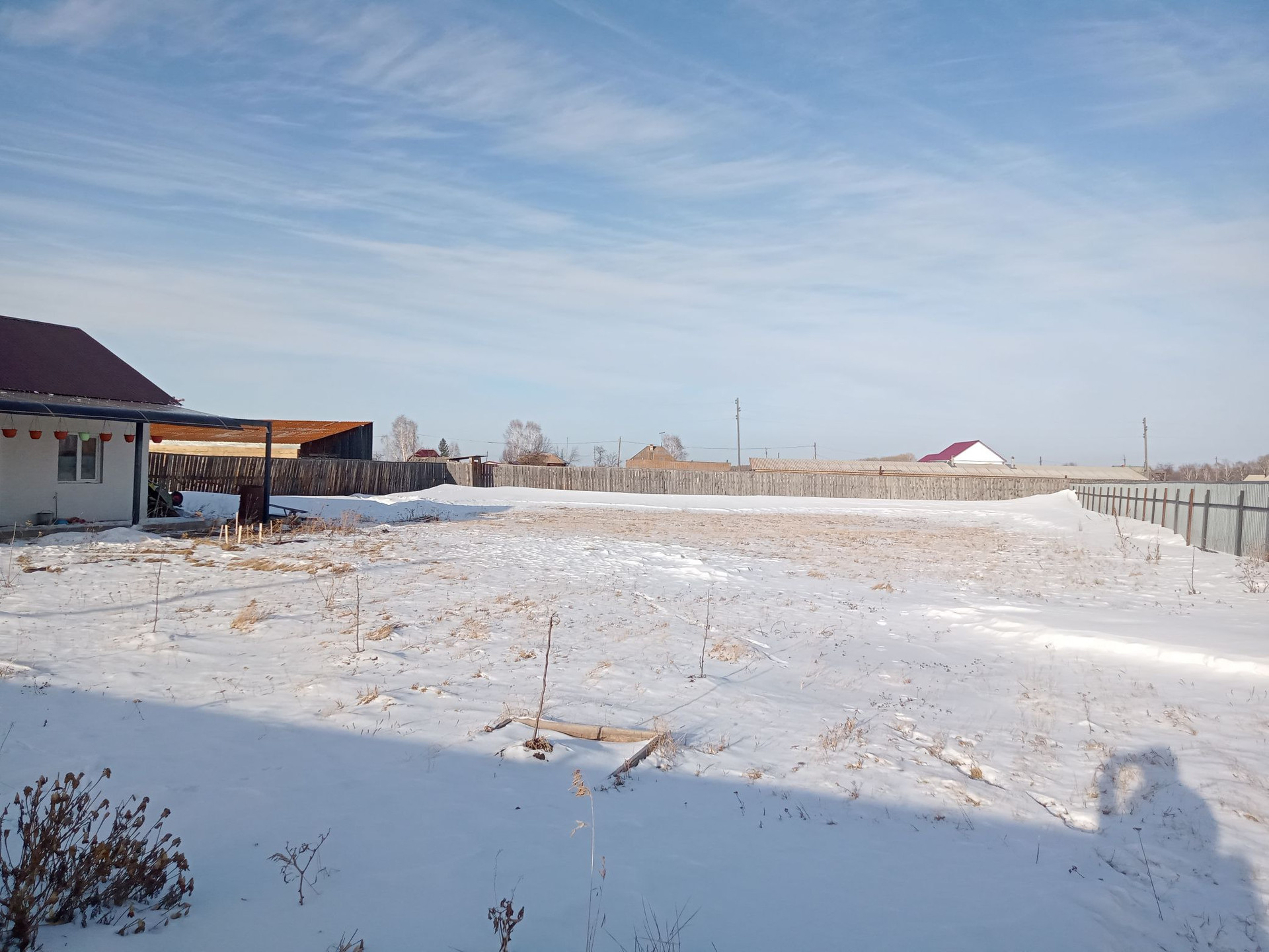 земельный участок площадью 15.75 соток, весь огорожен металлопрофилем.