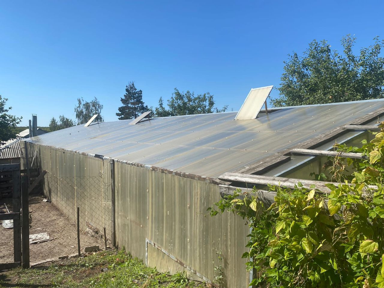 На участке большая теплица 150 метров,из поликарбоната, огурцы, помидоры, редис, зелень, круглый год., хоз блоки, курятник, красивые аппетитные курочки.