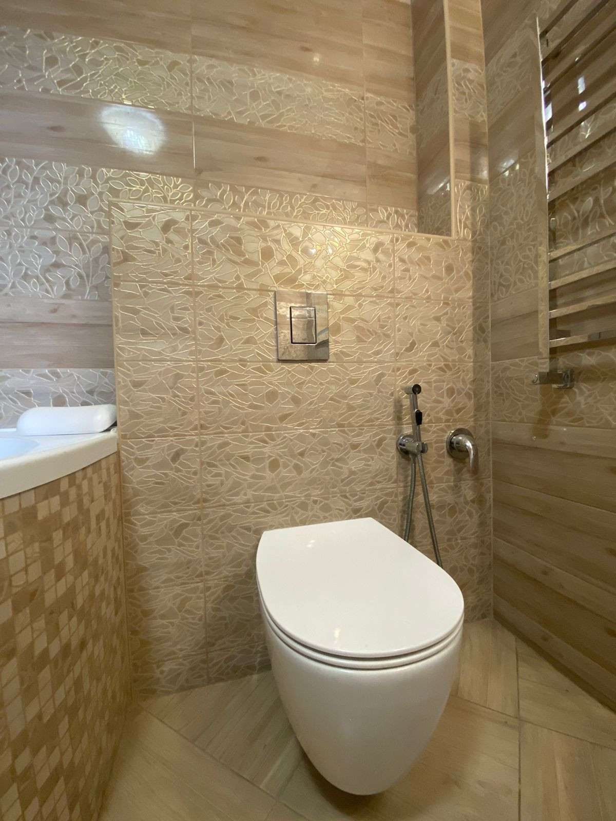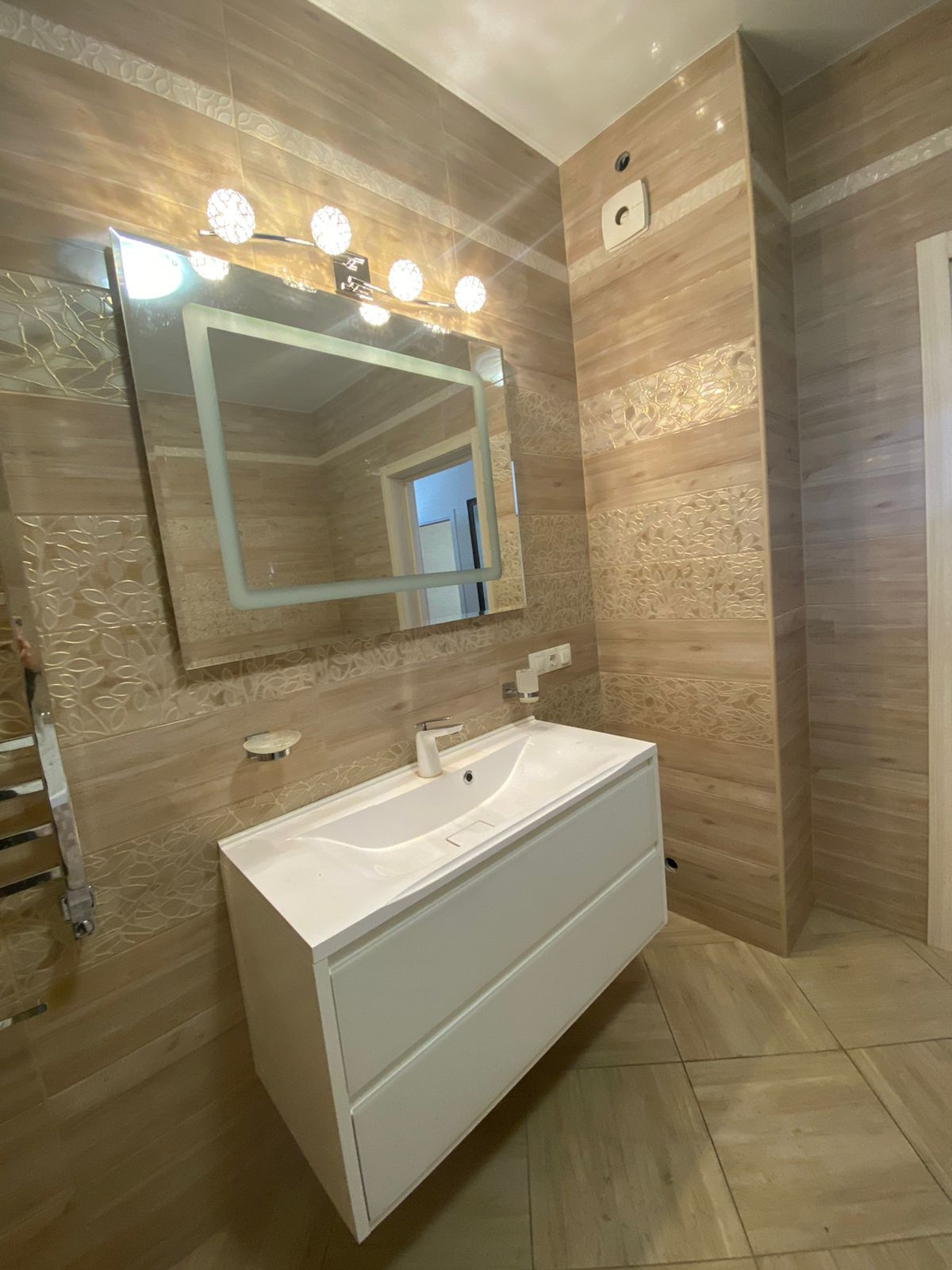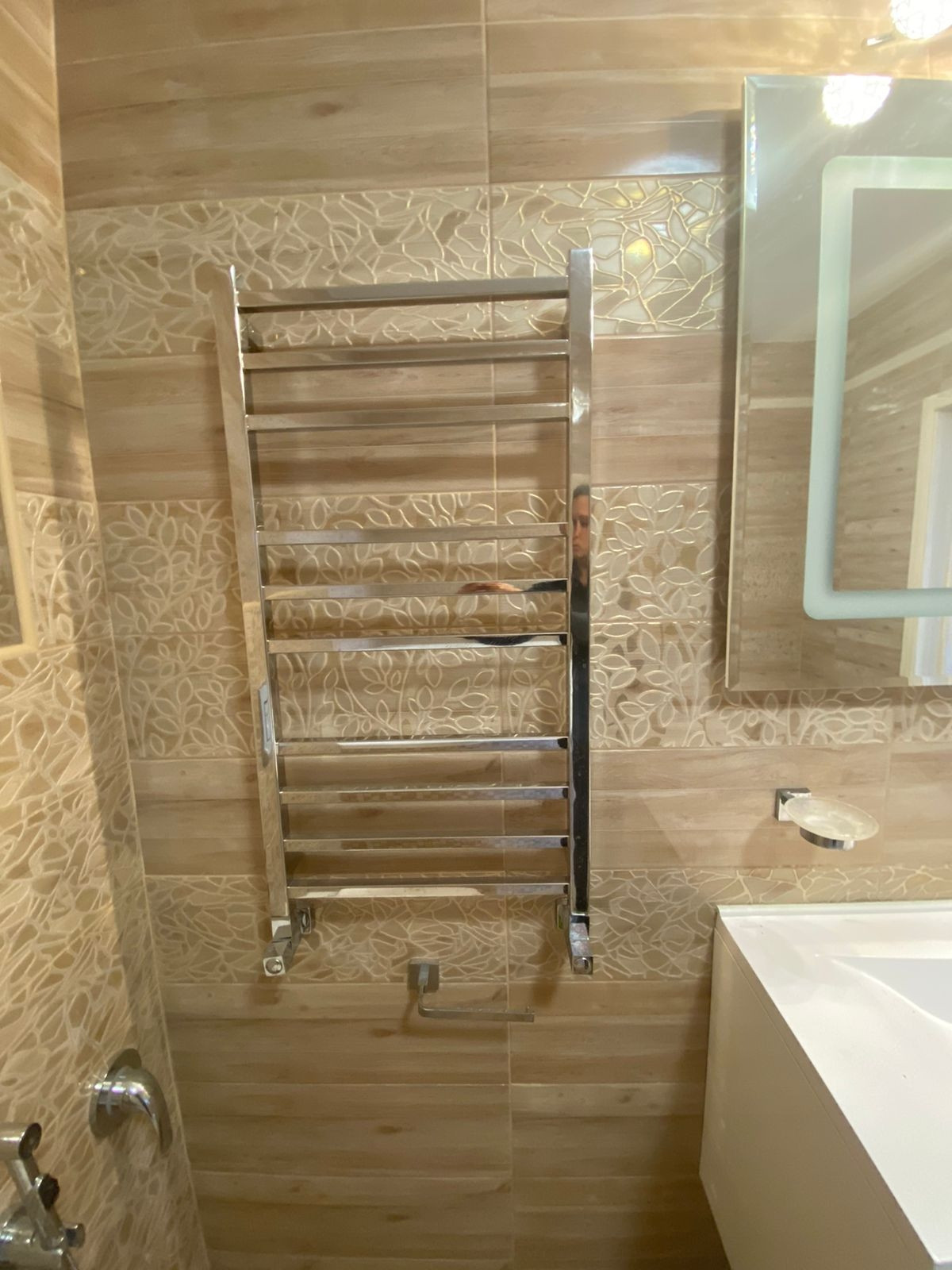 Стены и пол выполнены из дорогостоящего кафеля.