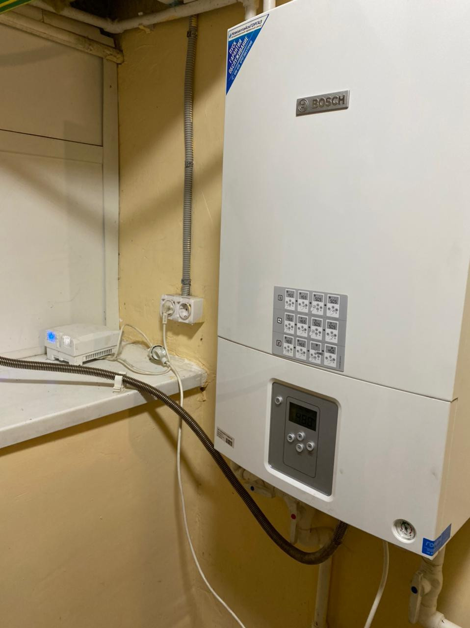 Имеется резервный твердотопливный котёл (Boch).