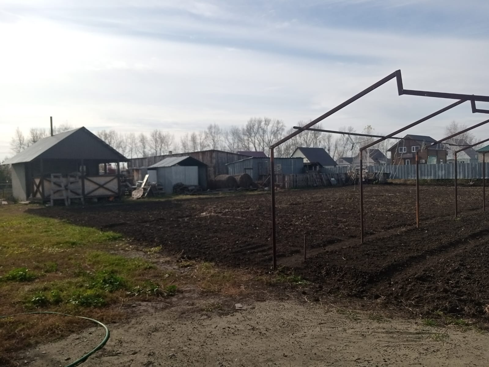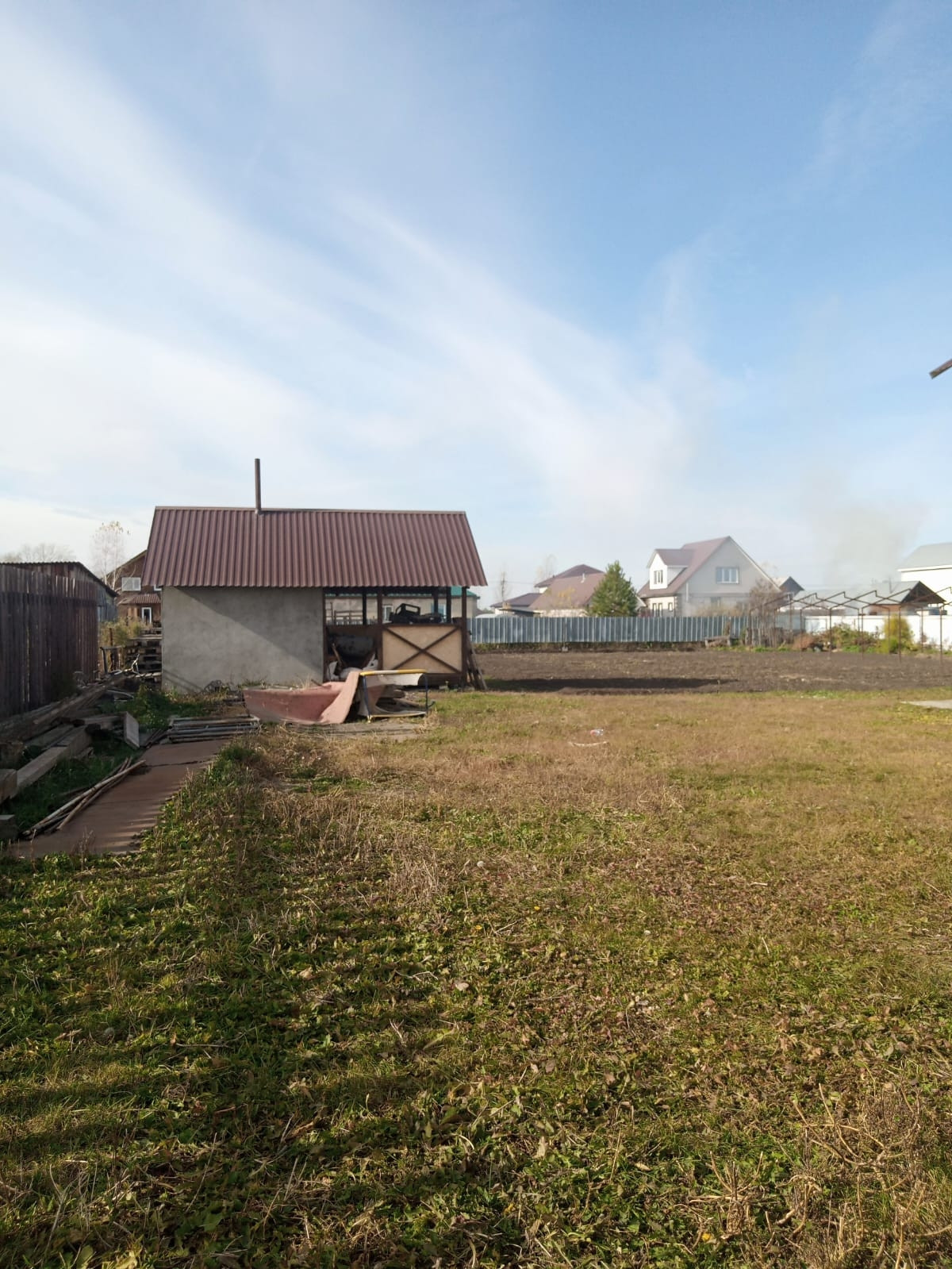 Участок 15 соток,ровный.На участке расположена новая баня,тандыр.Есть место для разведения кур.Также установлен каркас для большой теплицы.