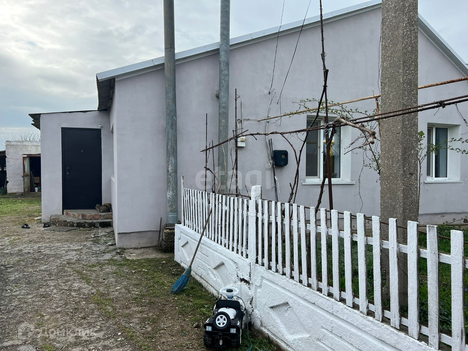 Выполнен из природного материала (ракушечник) 71,8 м2 на участке 13,2 соток. Окна ПВХ, произведено межевание, участок ровный, по периметру огорожен забором. Дом подключен ко всем коммуникациям :газ, вода, свет. В доме 4 спальных комнаты. Санузел и душ в доме. На территории хоз. постройки.
