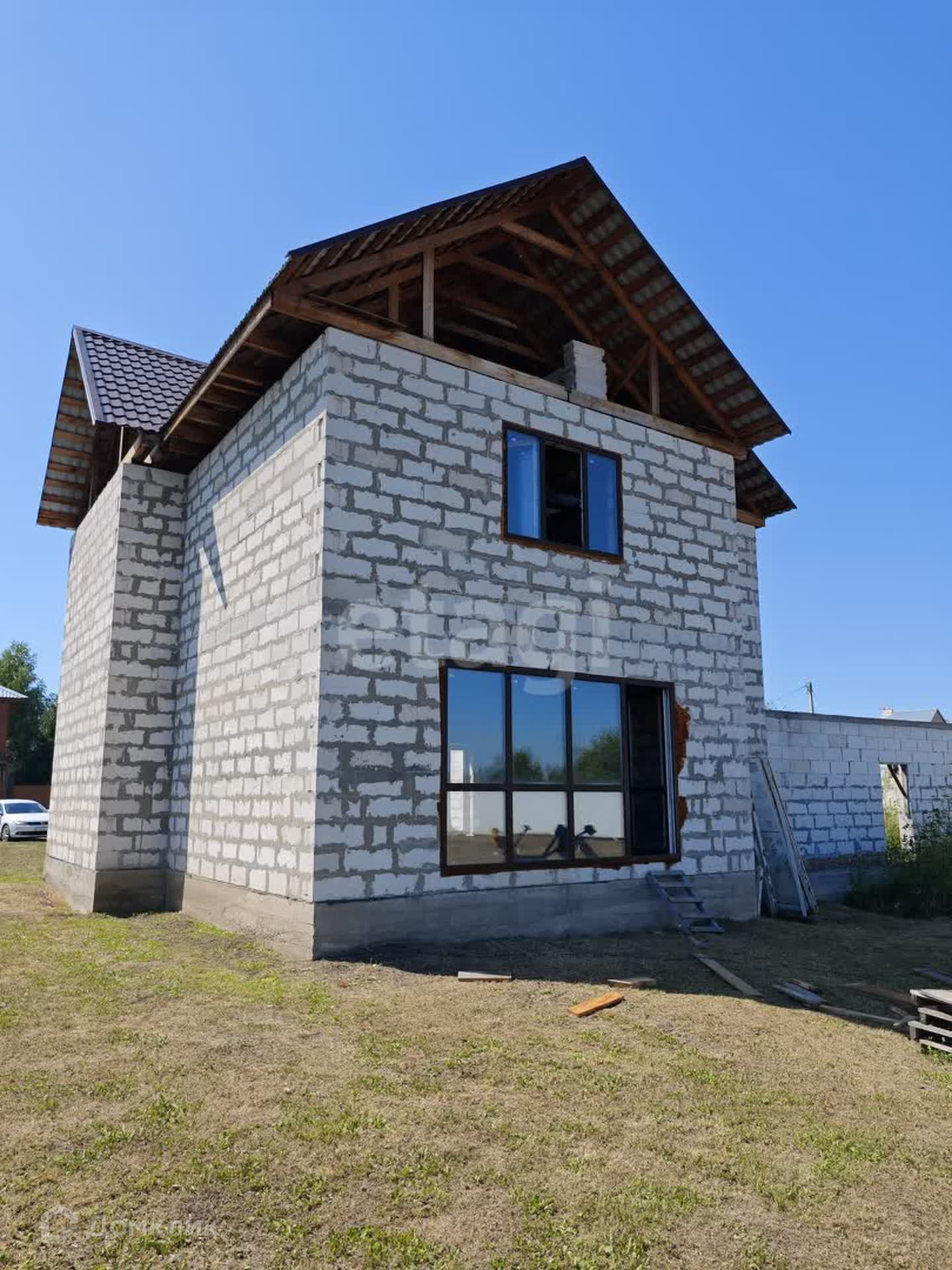 Объект незавершенного строительства . Дом в два этажа с мансарным этажом, общей площадью 158 метров квадратных . Расположен на второй линии от дороги, на земельном участке в 15 соток . Участок хороший и ровный. Выставлена коробка из газоблоков , перекрыта крыша , установлены стеклопакеты.