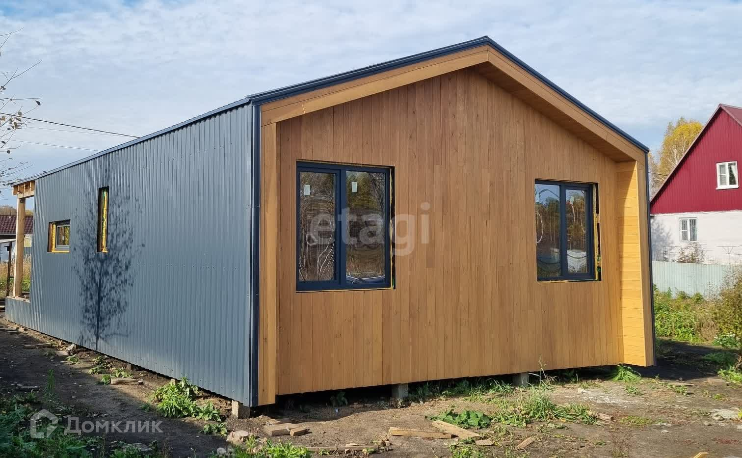Продается уникальный жилой дом в стиле «барнхаус» на стадии строительства, общей площадью 65 м², расположенный на живописном земельном участке в 7,5 соток в селе Березово, Кемеровский район.