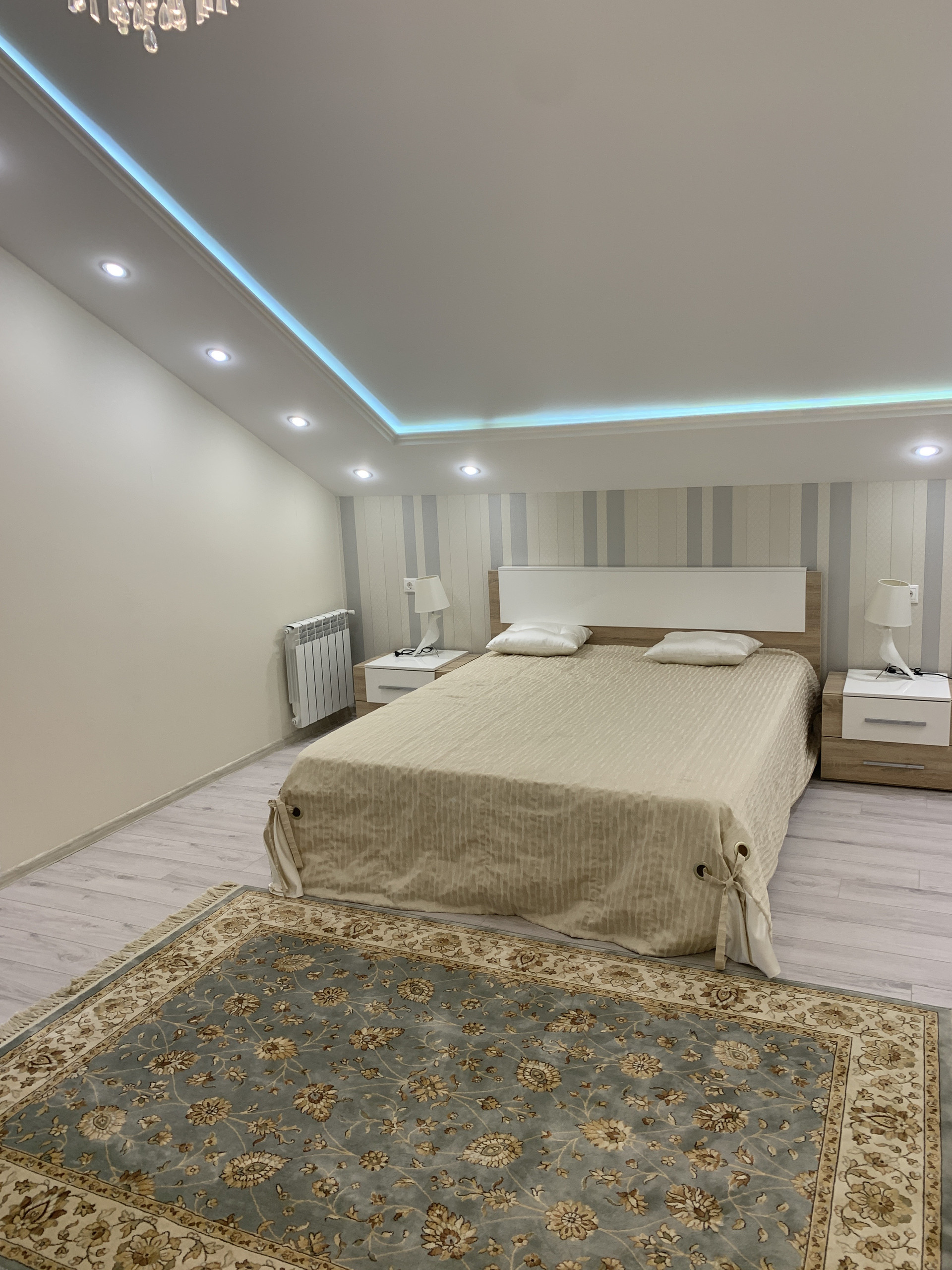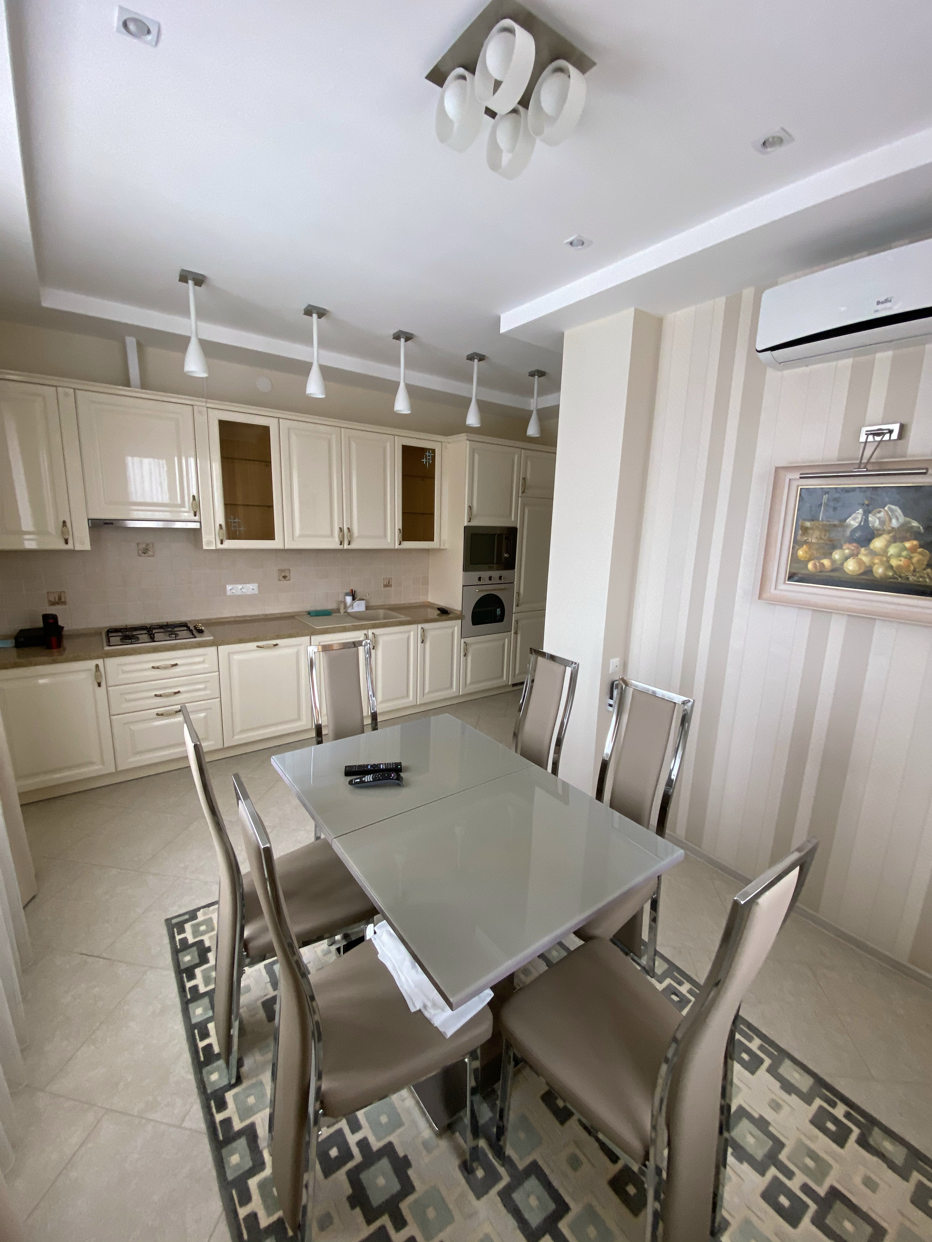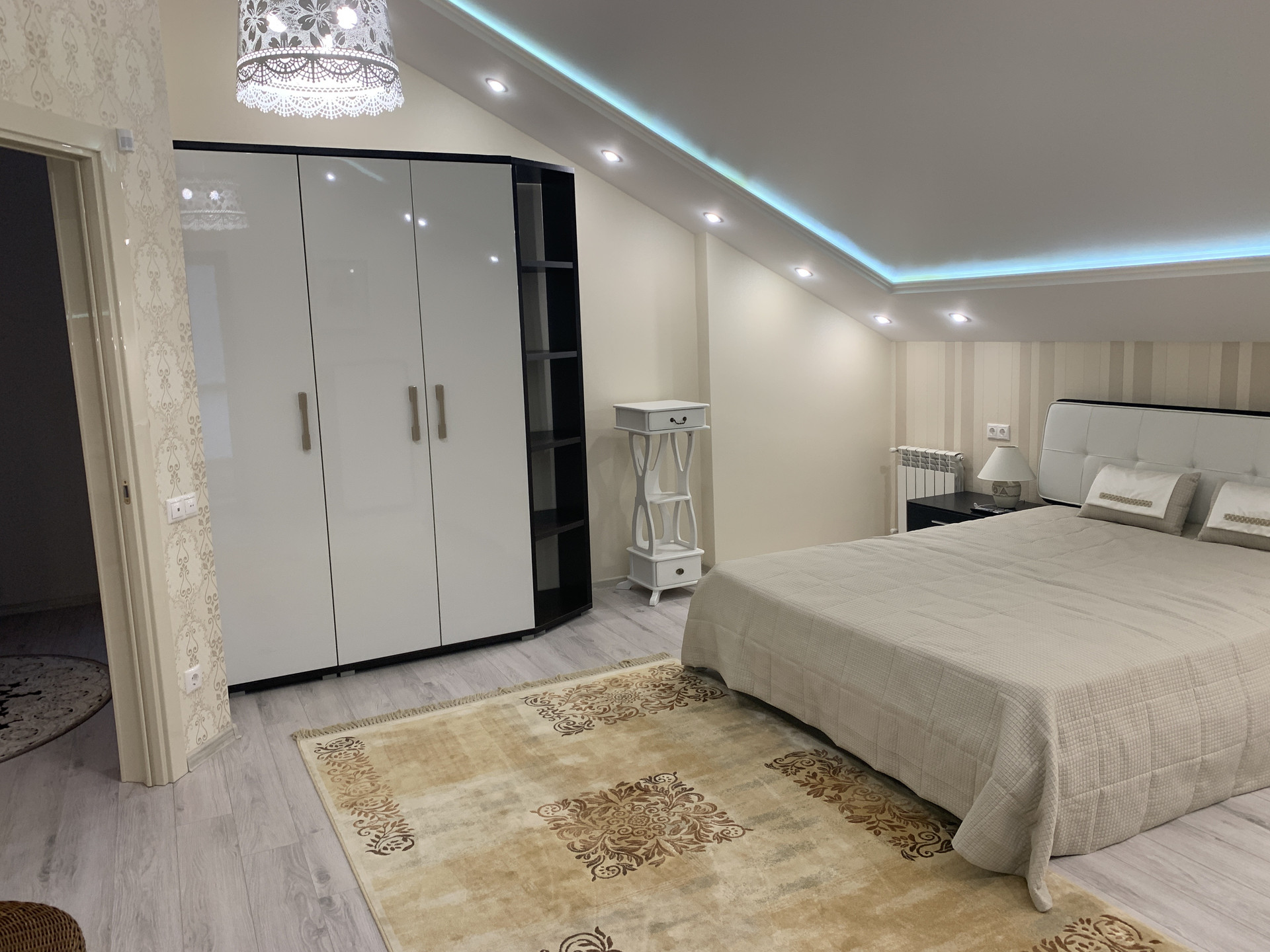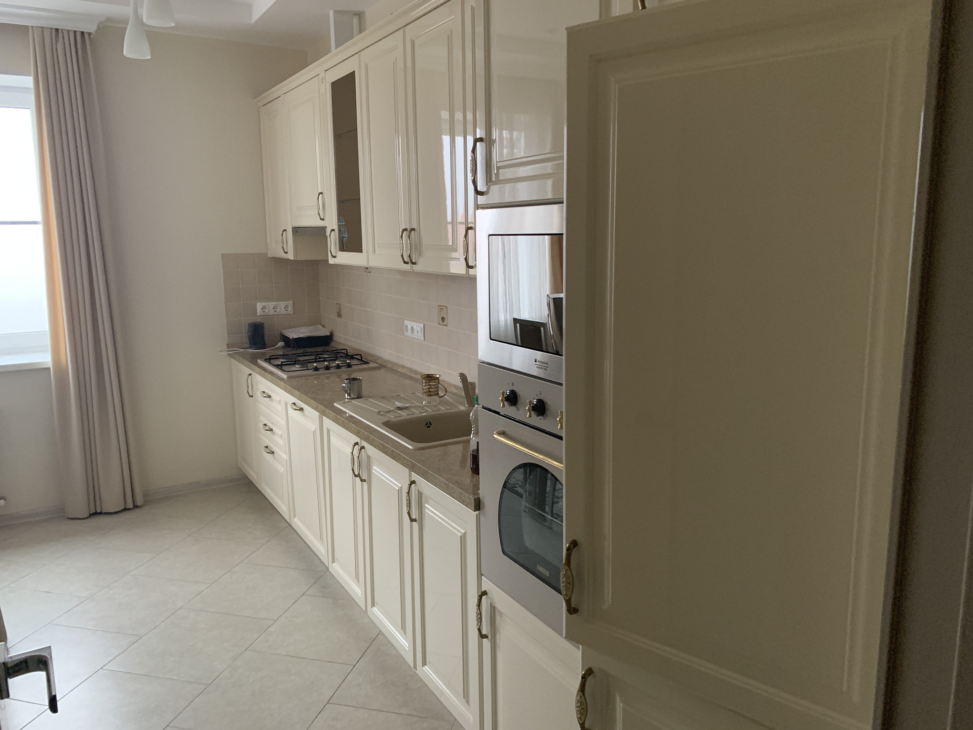 На первом этаже располагается кухня, оборудованная современной мебелью и техникой (встроенный холодильник, посудомоечная, микроволновая, духовой шкаф) гостиная, спальня, туалет, большой холл.