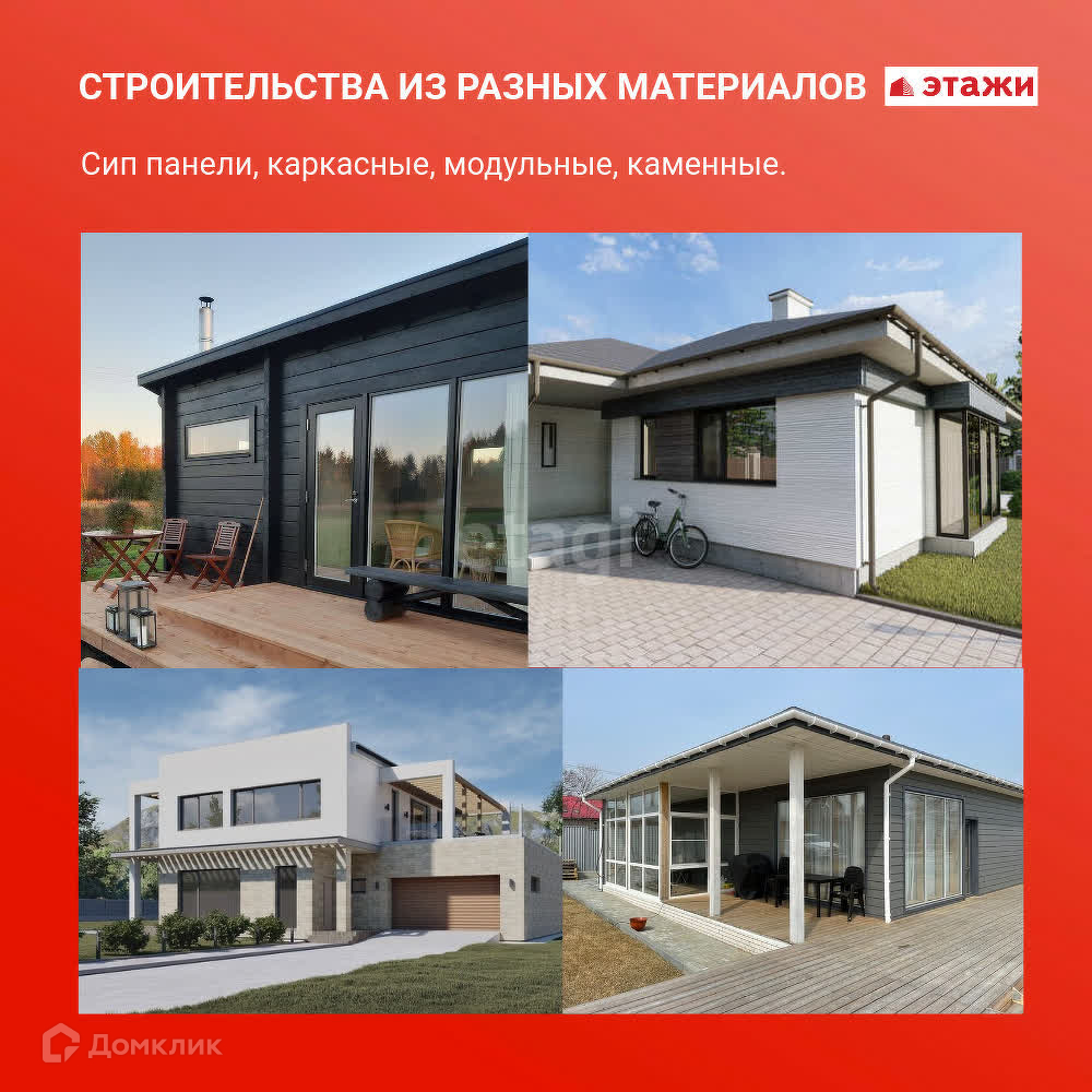 - строительство дома из разных материалов (сип, каркасные, модульные, каменные);