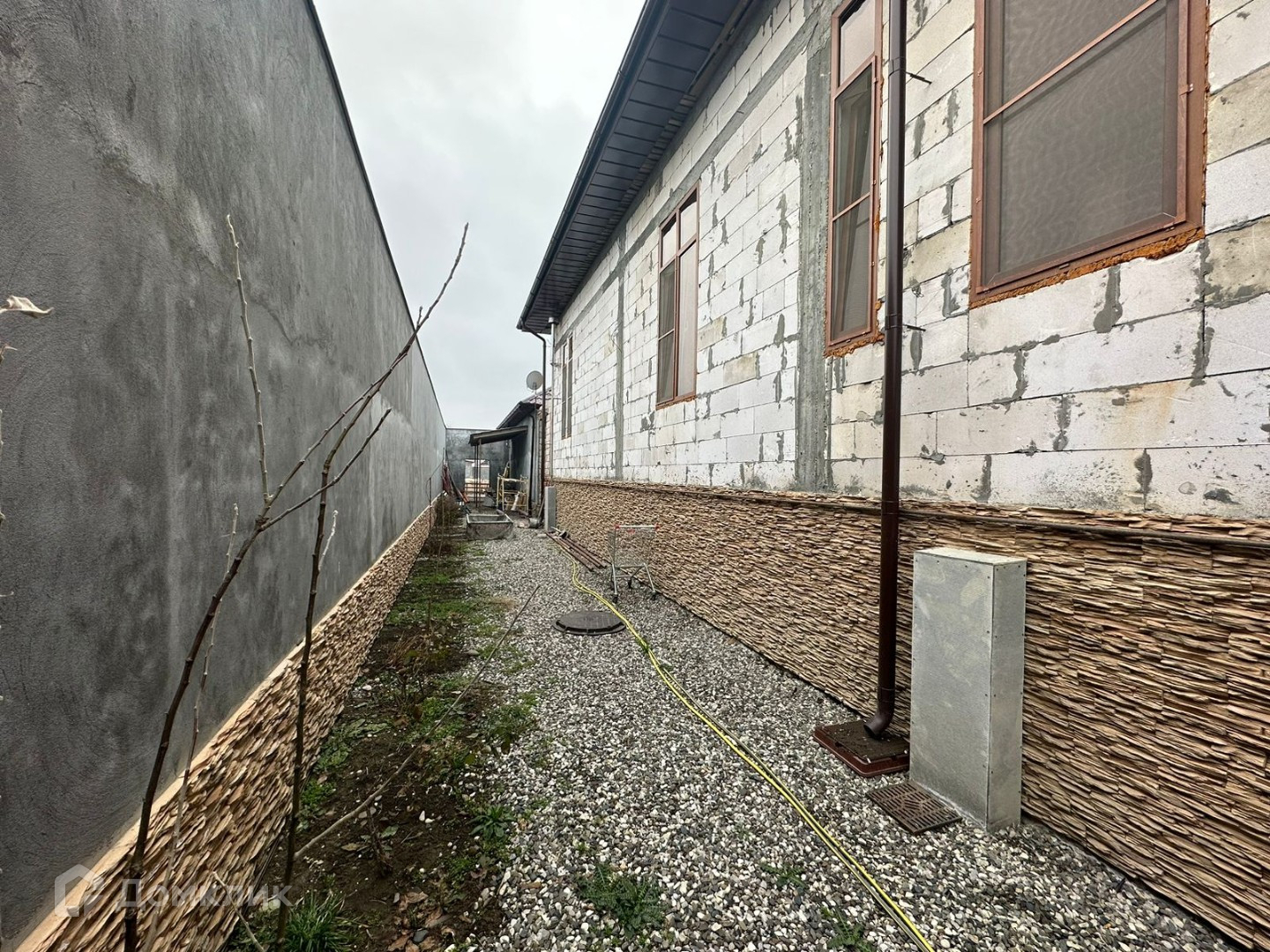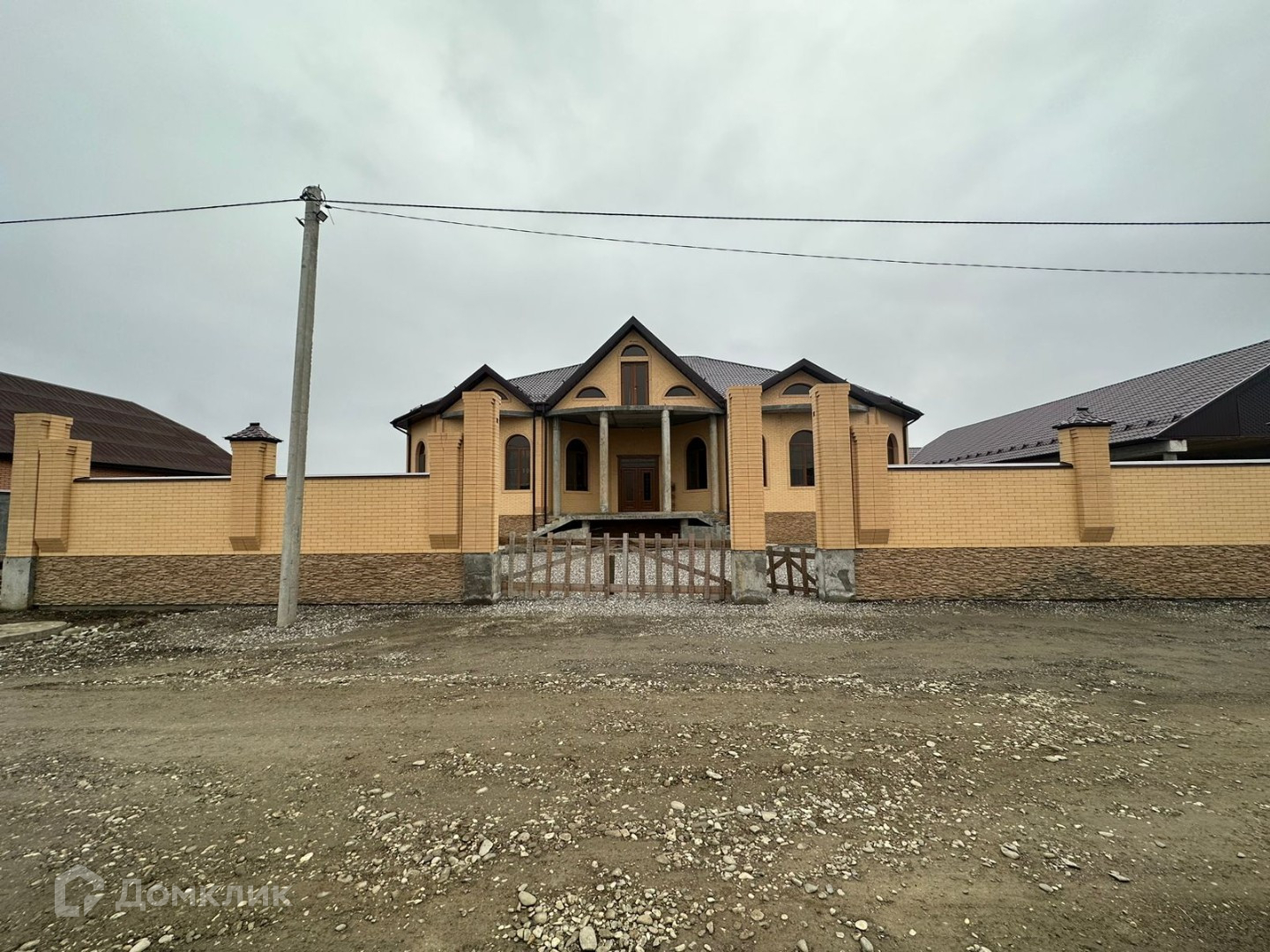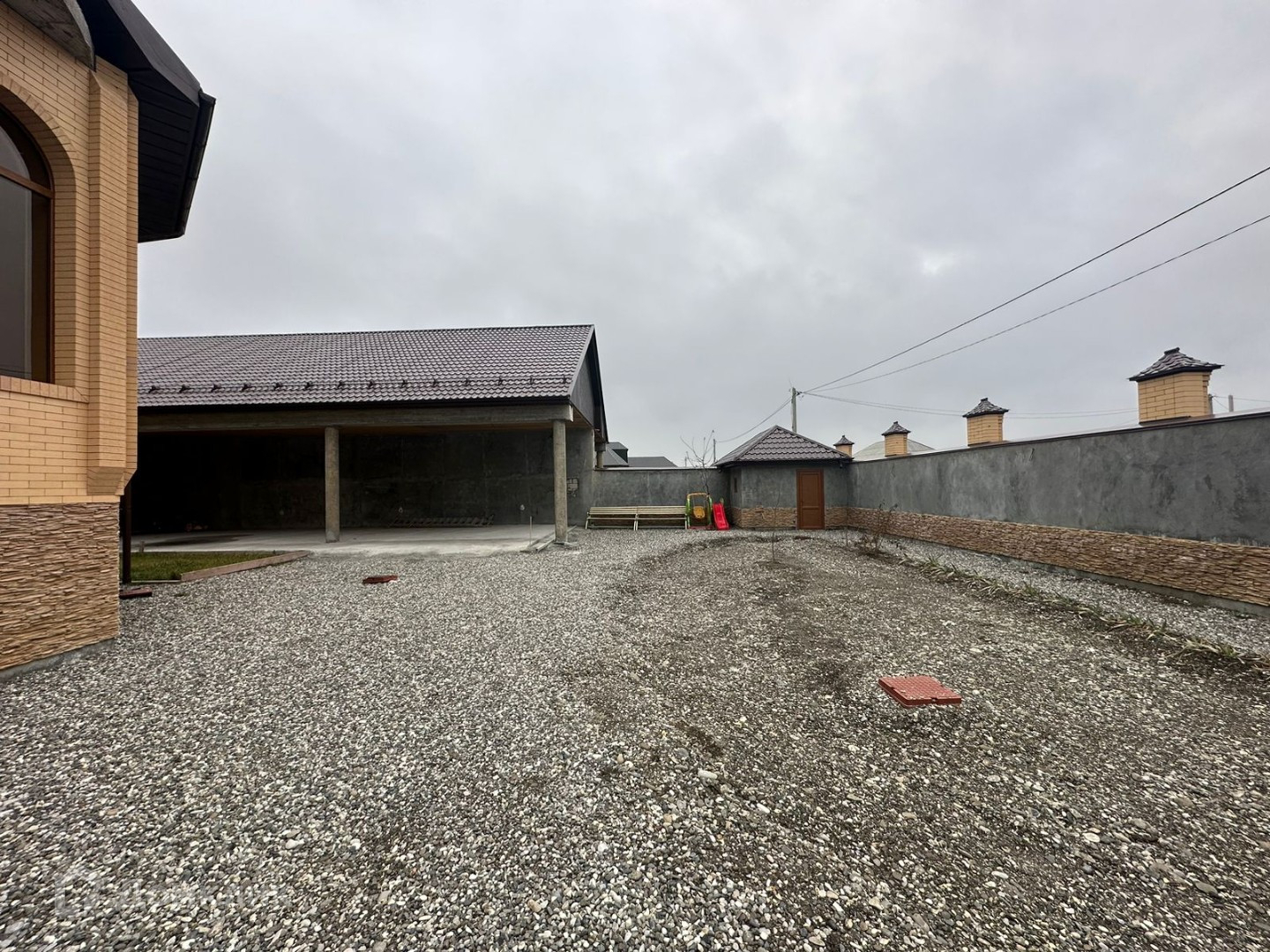 Дом полностью огражден. Дом и ограждение полностью обклеен фасадным камнем. Очень высокие потолки 4+метров. Как видите на фото ремонт полностью не закончен. Отопление, разводка и кафель в некоторых местах уже проложен. Есть два больших котла на случай ледникового периода, 8 циркуляционных насосов потому что по всему дому теплый пол. Очень много комнат 9+. Есть отдельно большой навес вдоль дома с кухней.