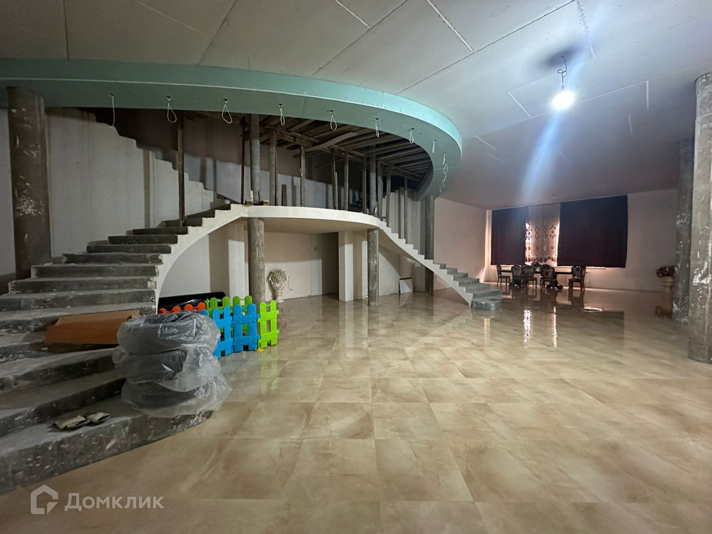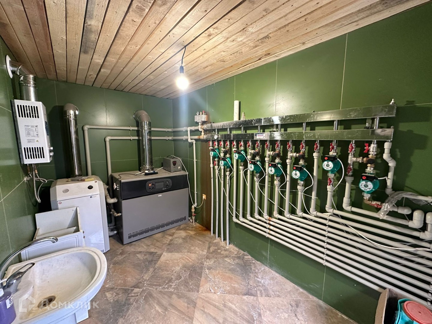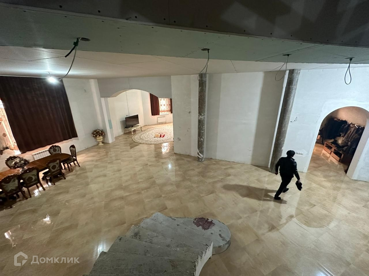 Дом полностью огражден. Дом и ограждение полностью обклеен фасадным камнем. Очень высокие потолки 4+метров. Как видите на фото ремонт полностью не закончен. Отопление, разводка и кафель в некоторых местах уже проложен. Есть два больших котла на случай ледникового периода, 8 циркуляционных насосов потому что по всему дому теплый пол. Очень много комнат 9+. Есть отдельно большой навес вдоль дома с кухней.