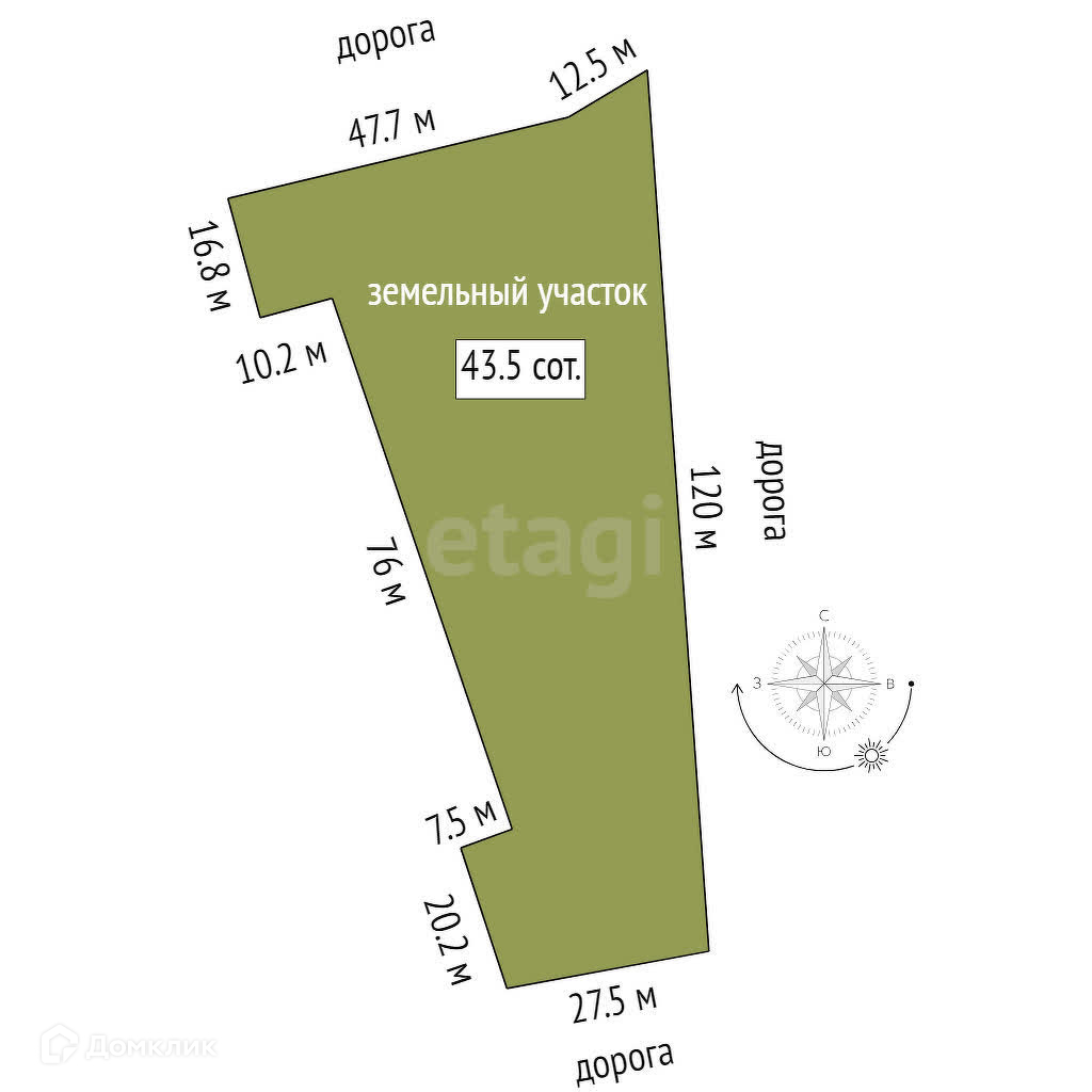 Площадь участка 43.55 сот.