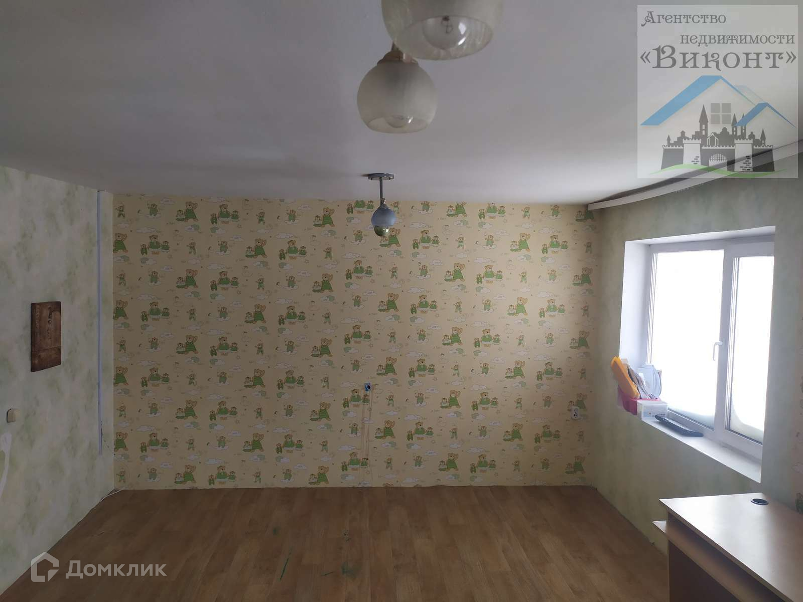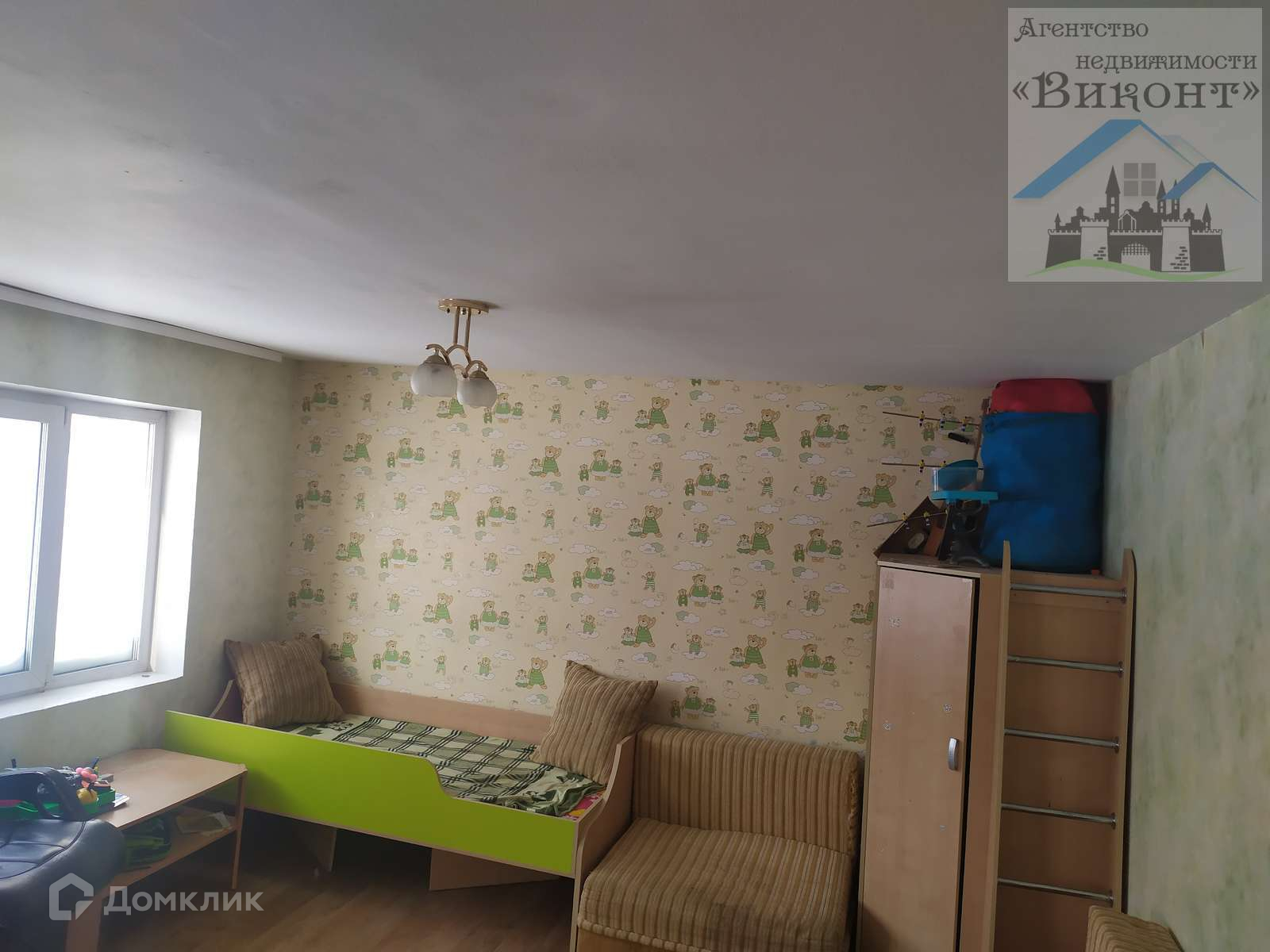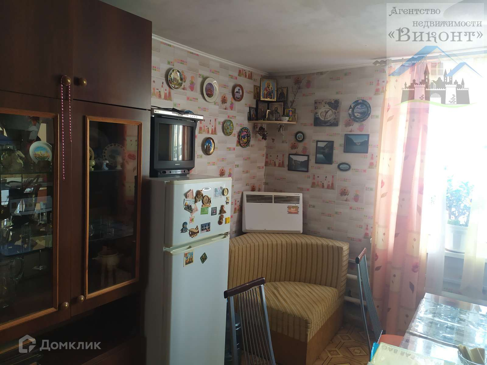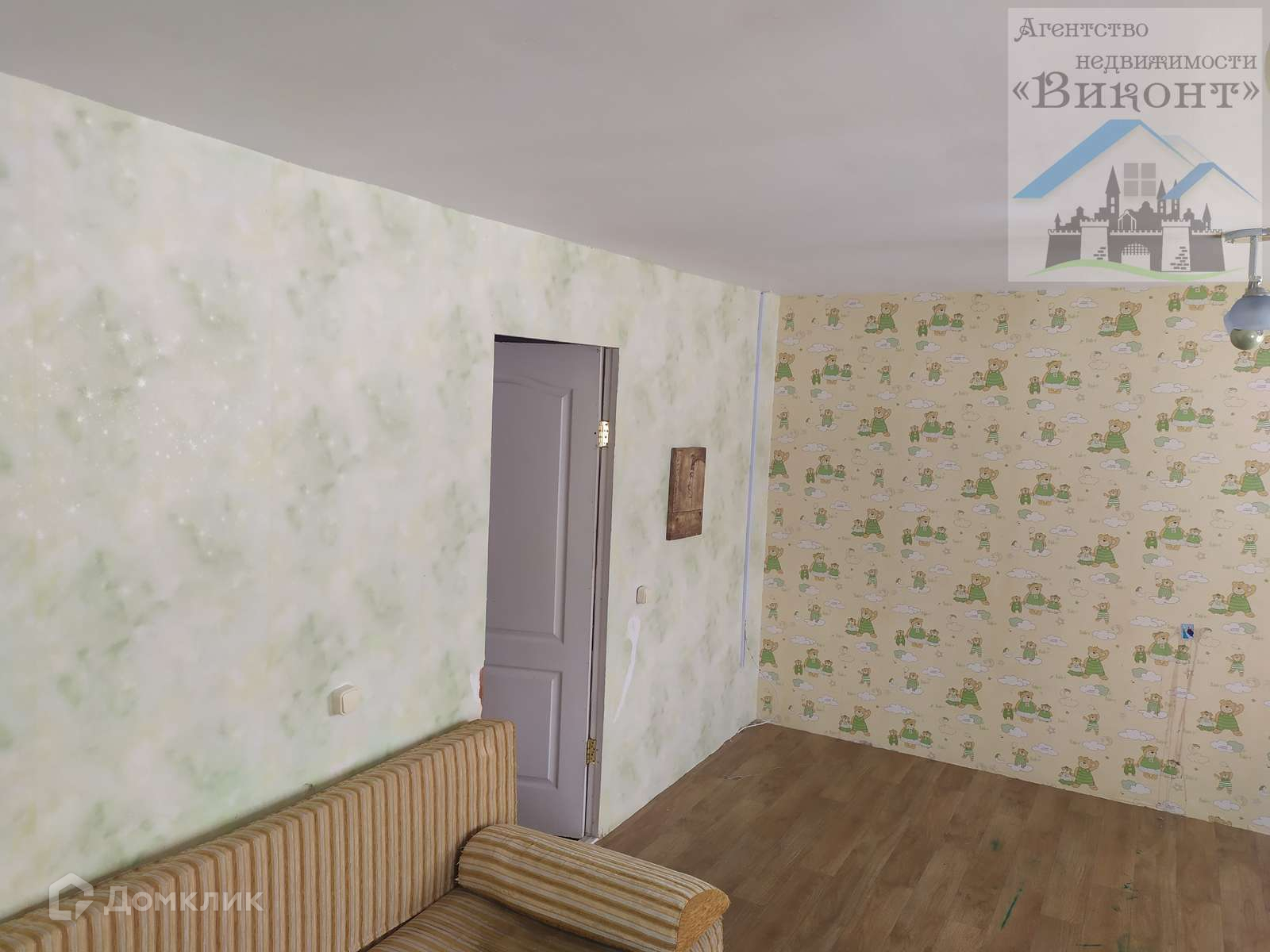 Гостиная светлая, имеет 2 окна. Высота потолка в гостиной 2,3 м. На полу линолеум.