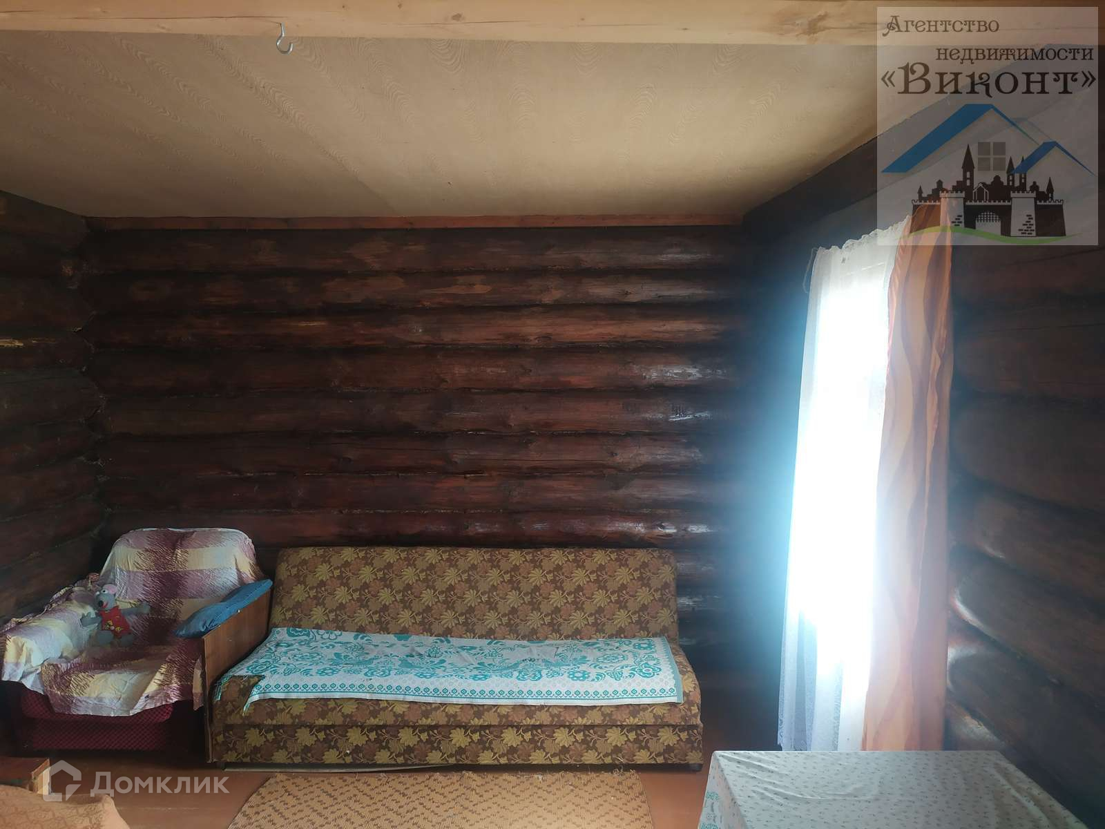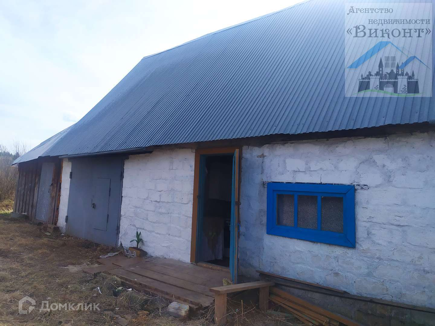 На участке имеется: дом бревенчатый под одной крышей с гаражом и баней. Крыша вентилируемая, профнастил. В доме планировалось установить печь, она куплена и достанется новым собственникам. Под домом подполье размером с дом. В доме одна жилая комната, каждое бревно пропитано пропиткой на восковой основе. Установлен столб с новым счетчиком электричества.