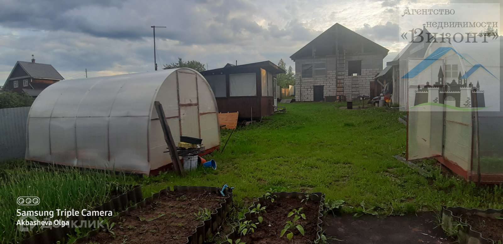 - из посадок: виктория, цветы, вишня, ирга, дикая слива, голубая ель.