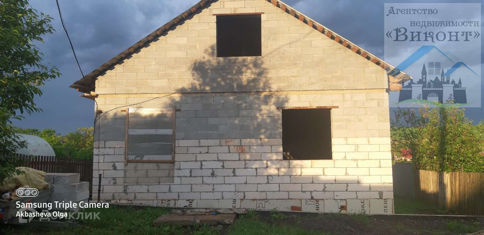 - недостроенный жилой дом размером 9х13м, из газоблока, возведен и заведен под крышу, вставлено 3 окна,