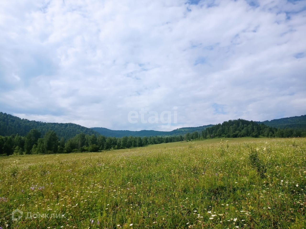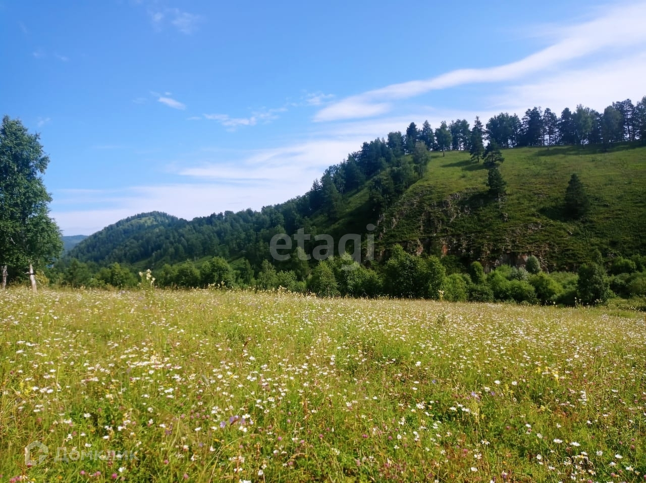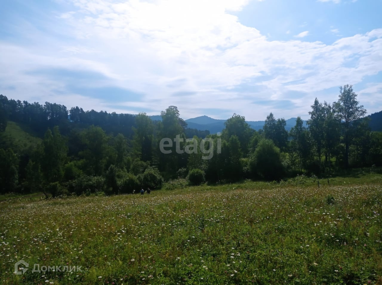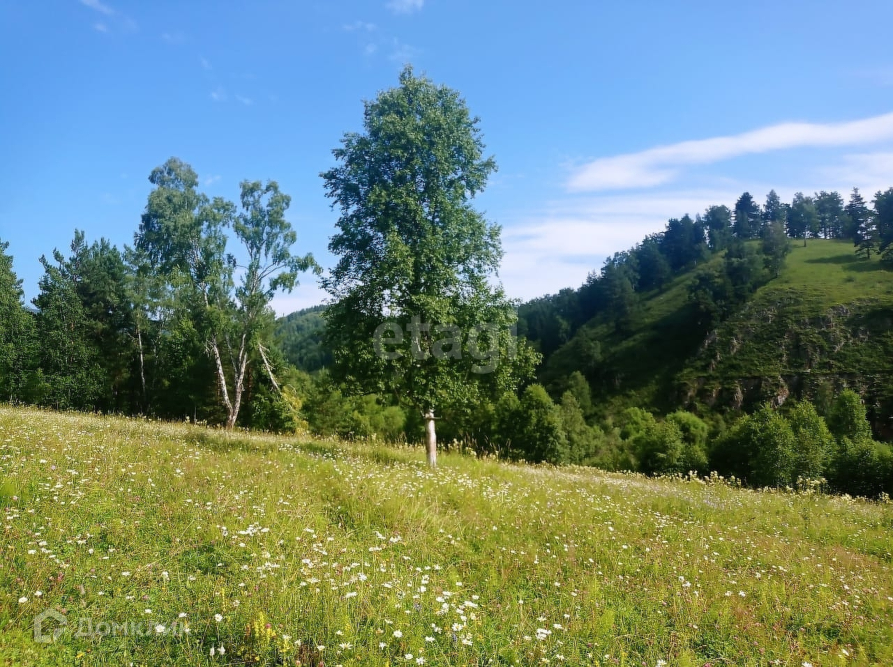 Продам очень солнечный живописный участок с цветущими лугами, окружённый горными пейзажами и сосново- берёзовыми лесами.