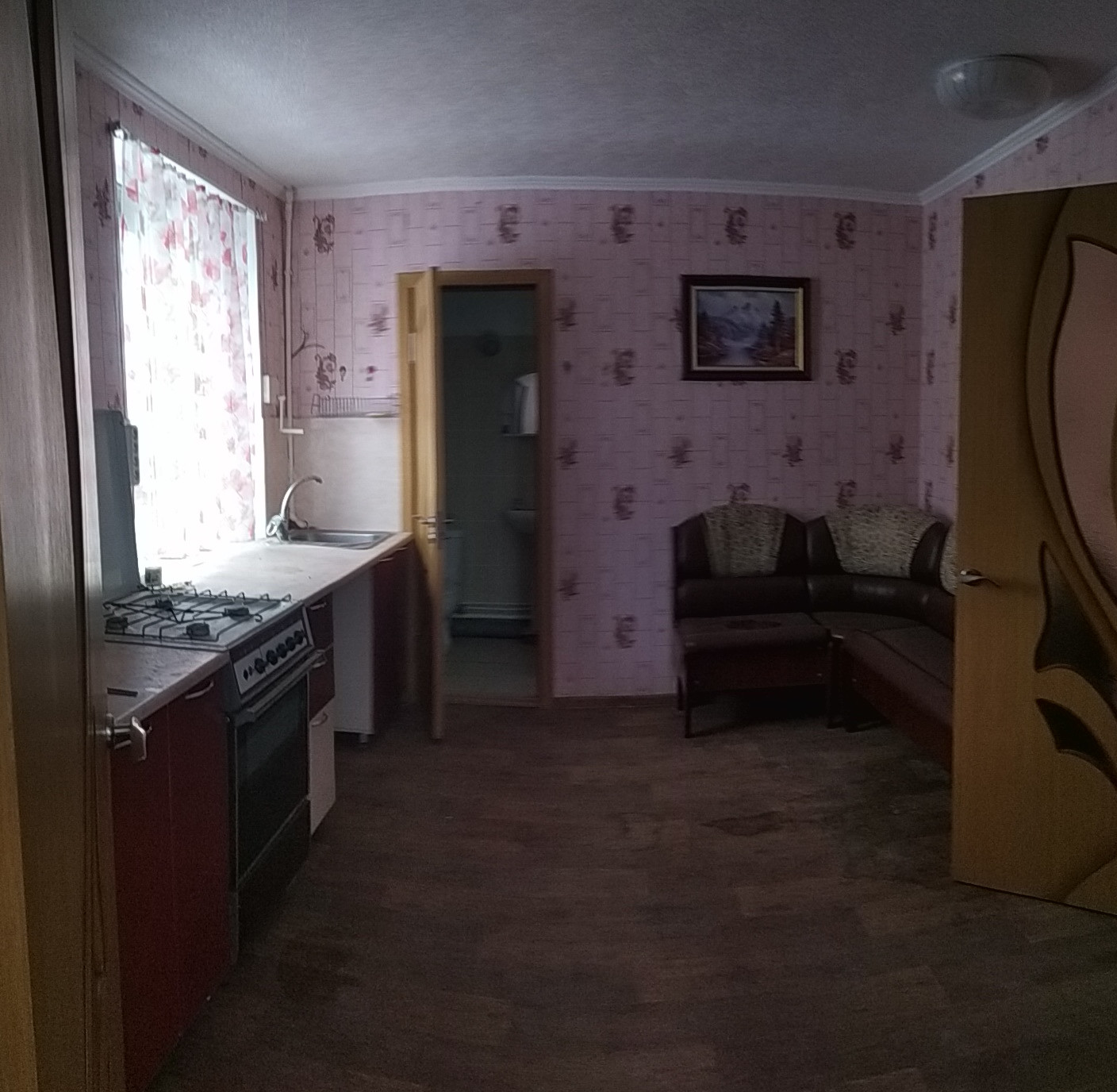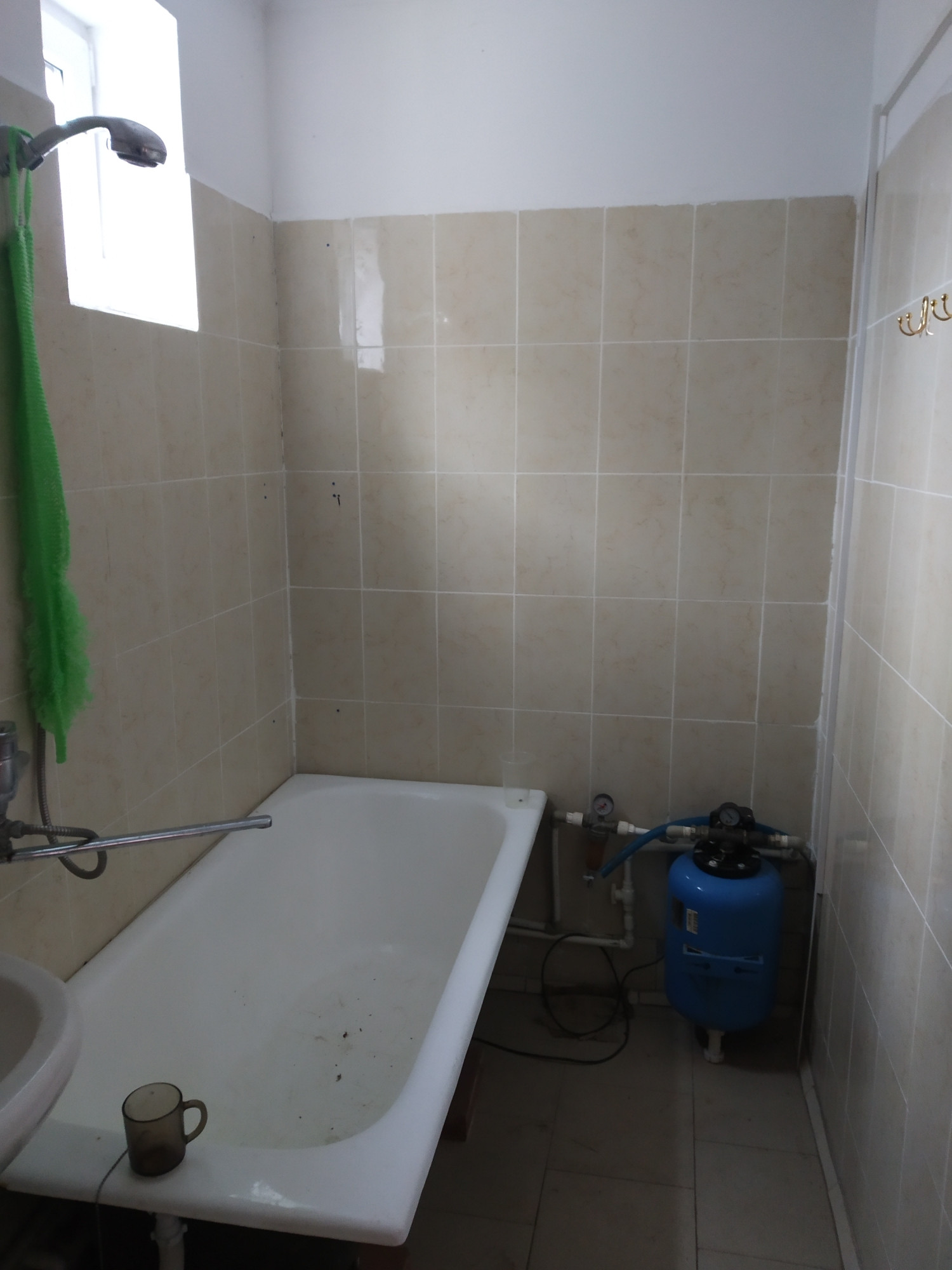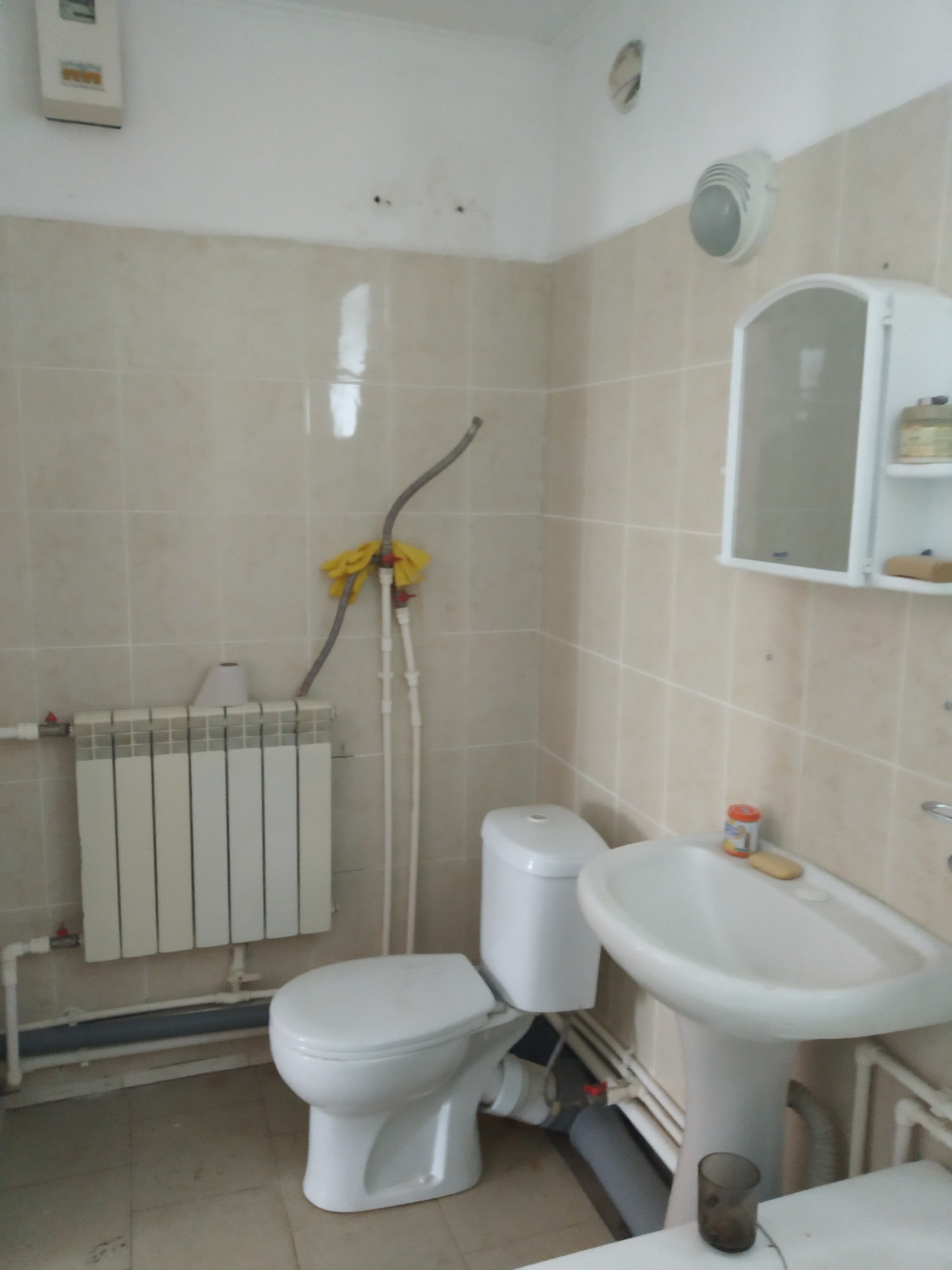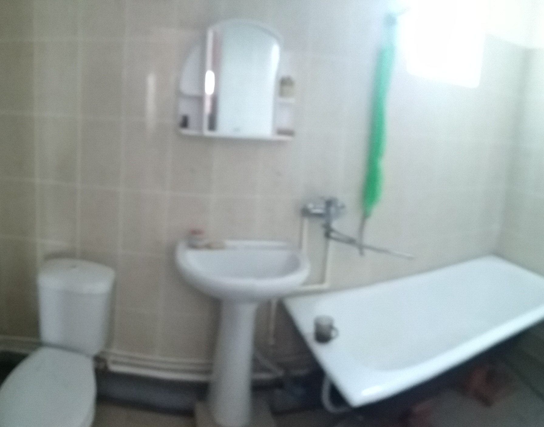 Санузел совмещенный, в плитке. Плитка так же на полу в прихожей.