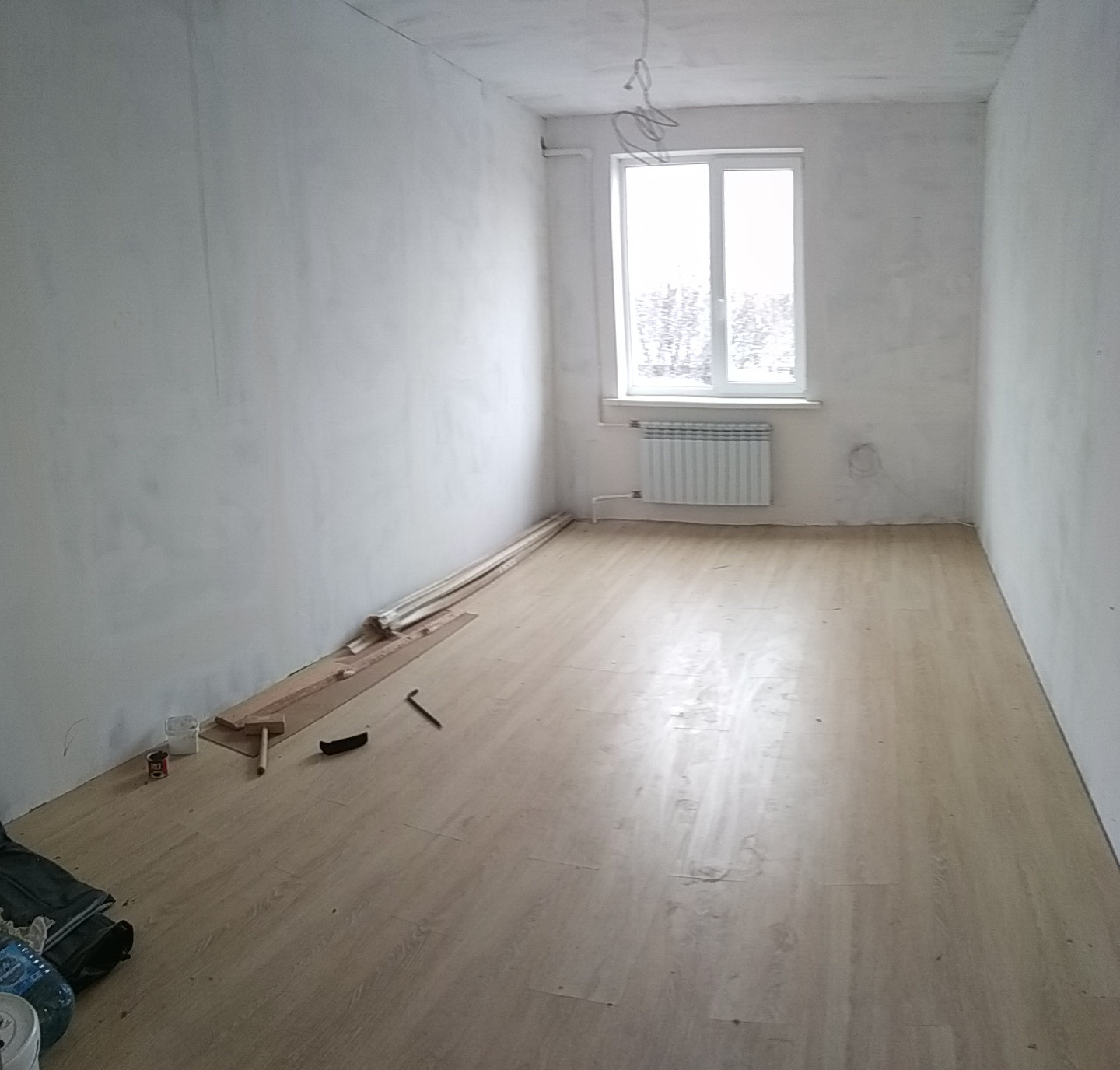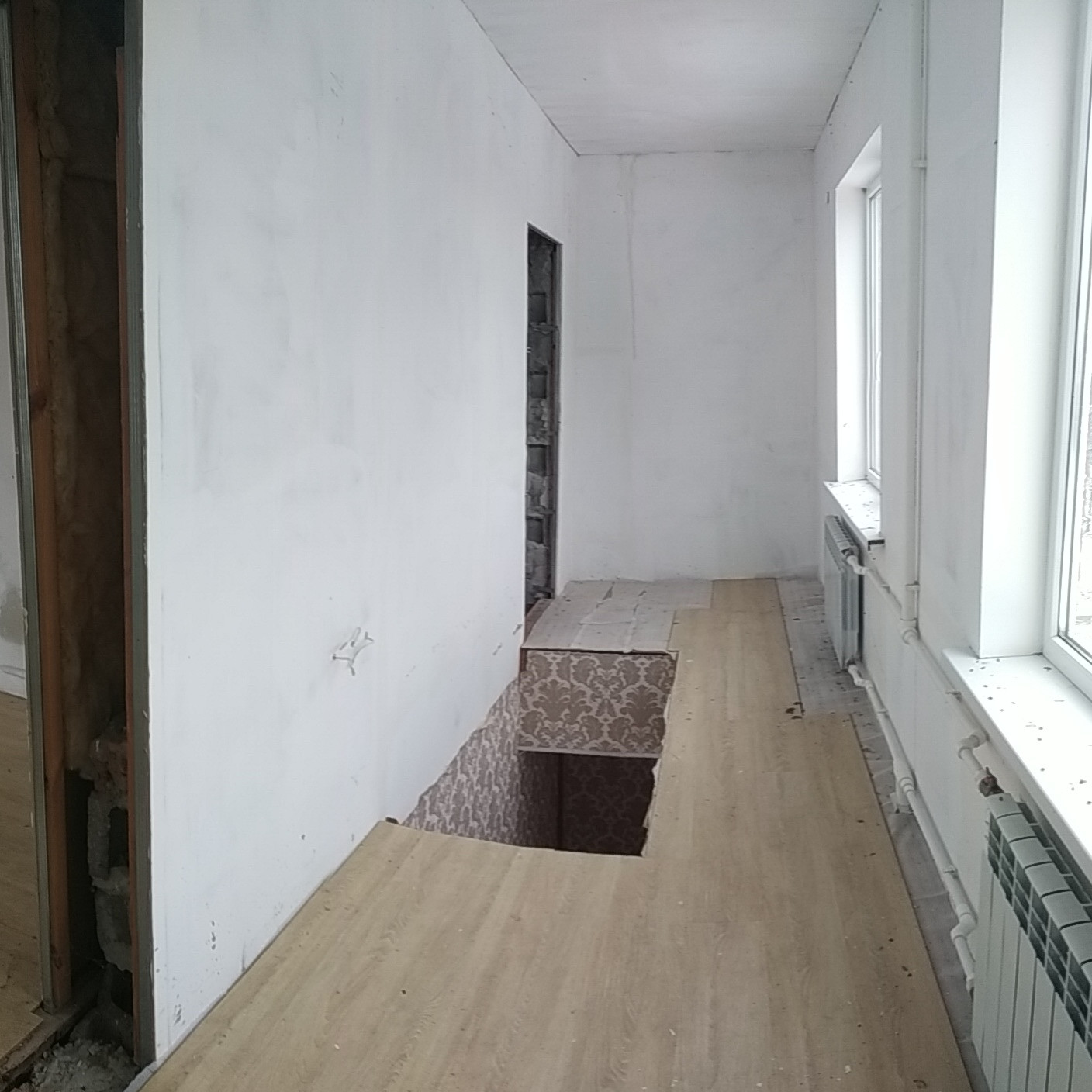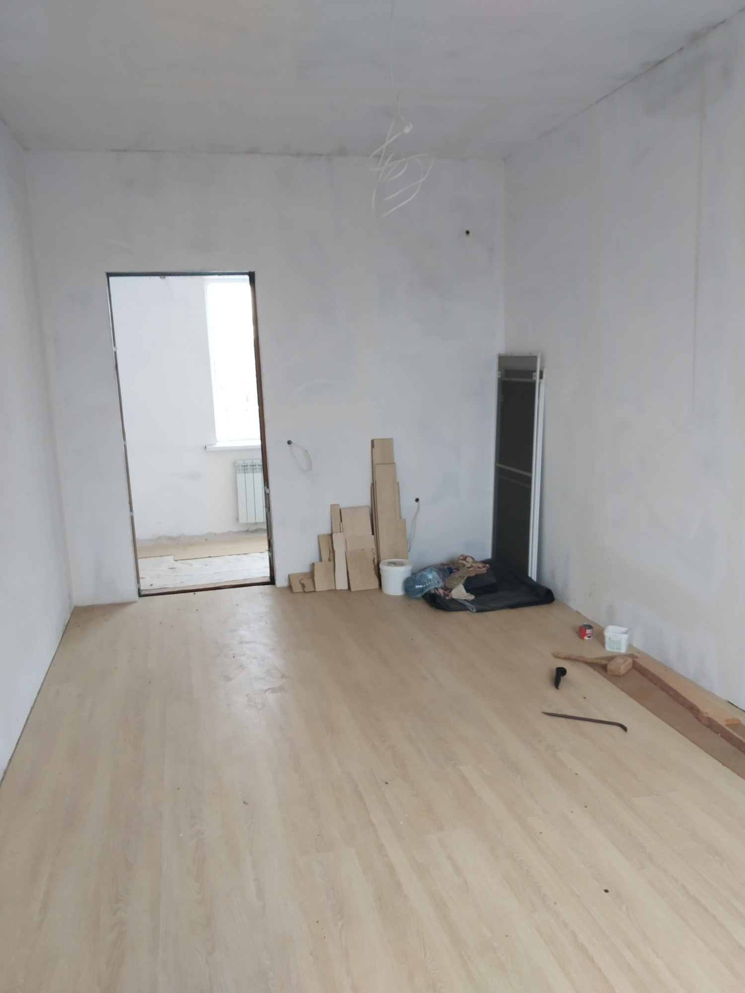В доме 3 большие комнаты + просторная кухня + прихожая с лестницей на второй этаж + тамбур.