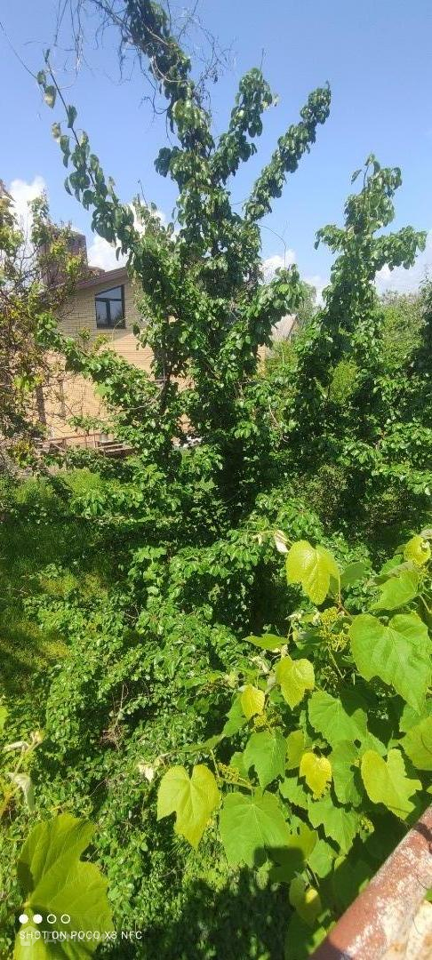 На участке много плодовых деревьев,виноград