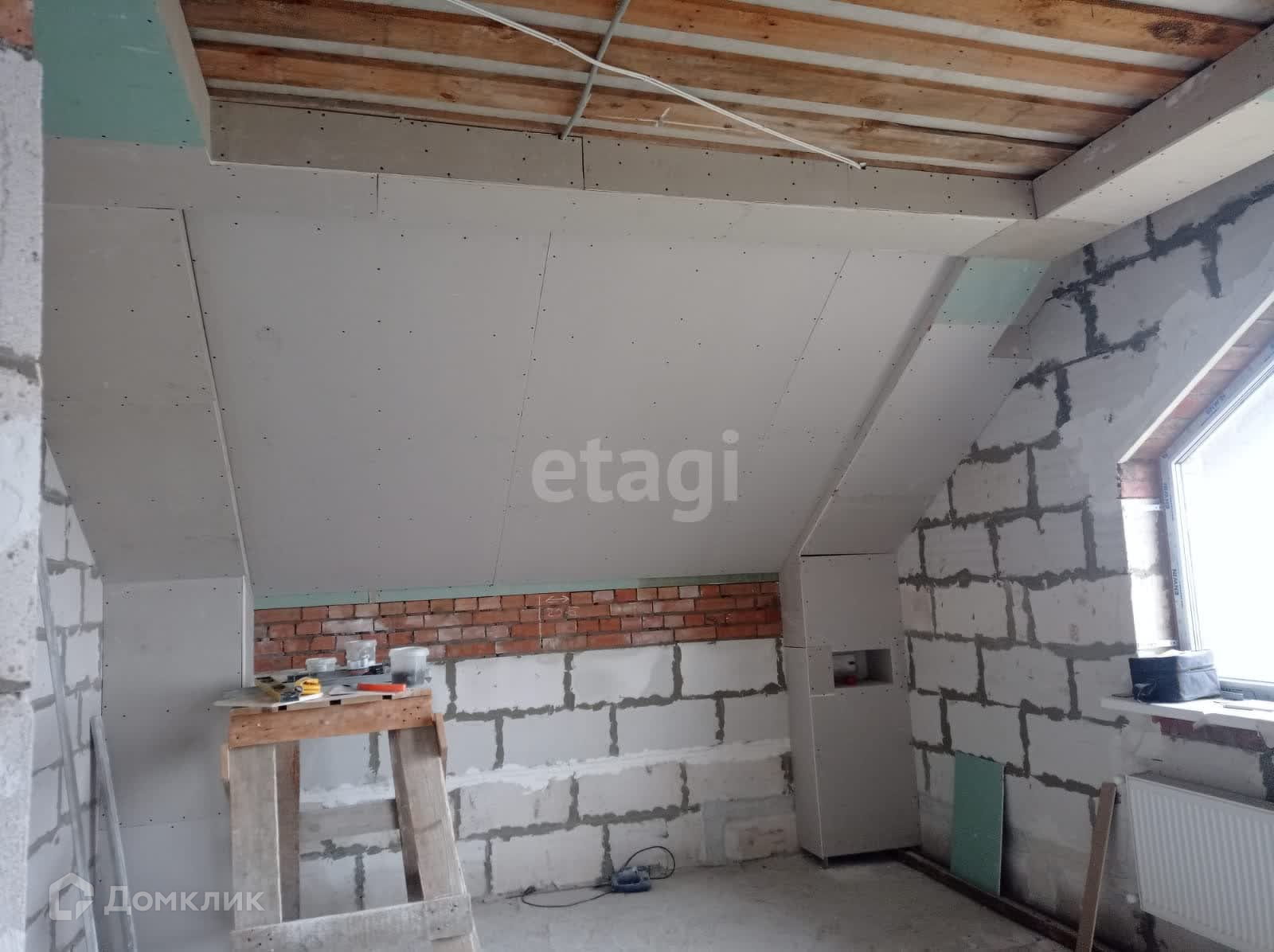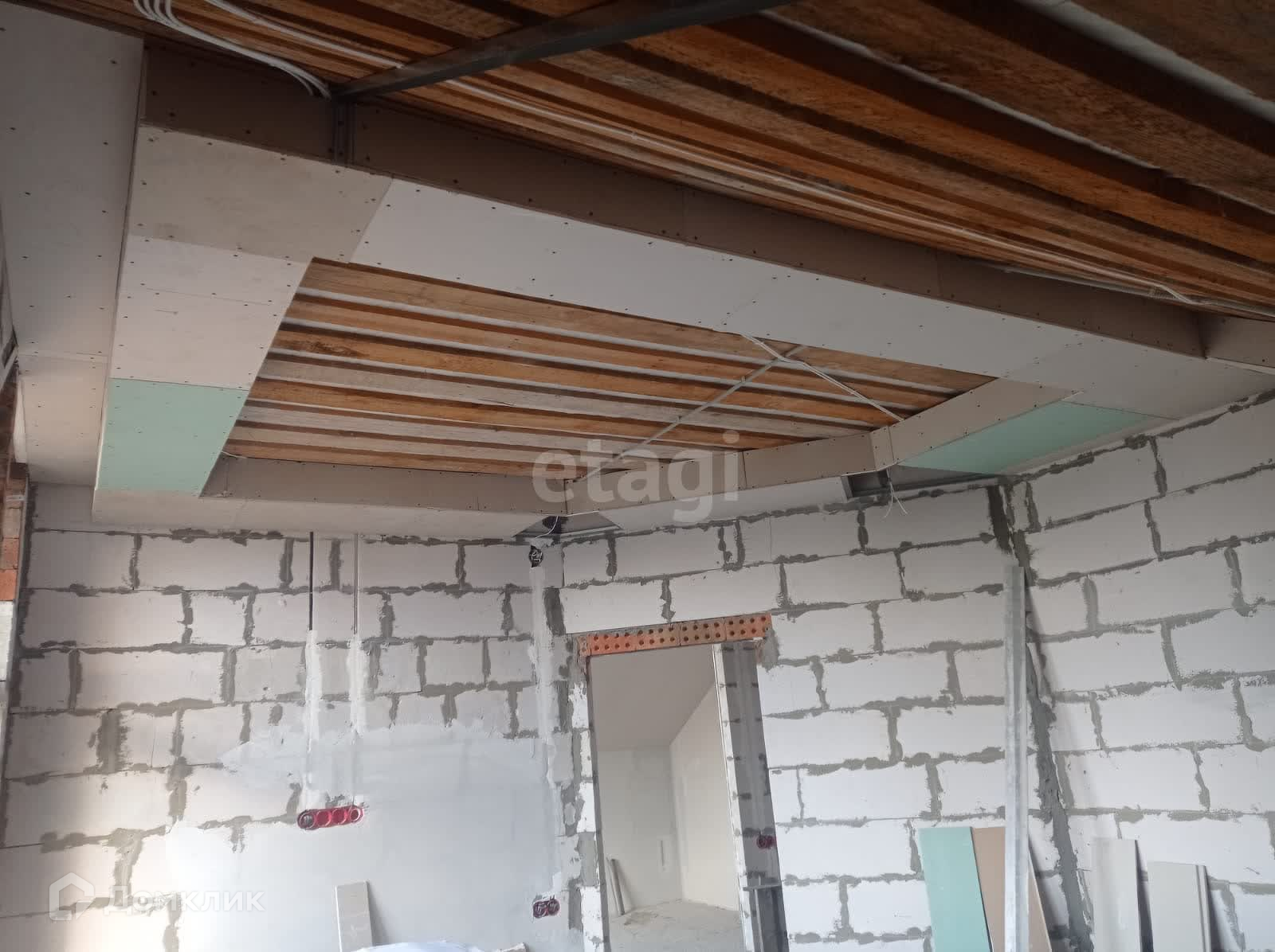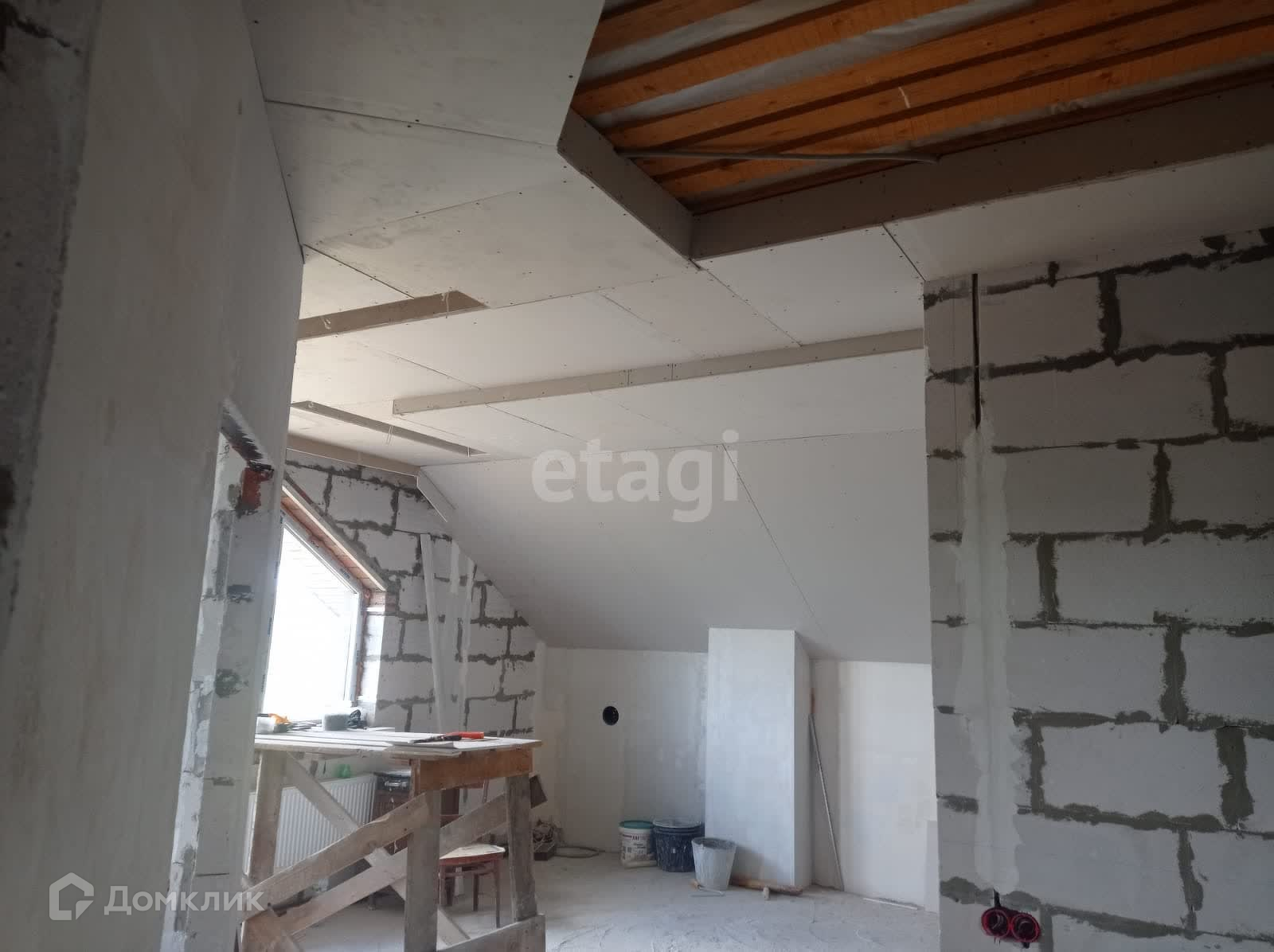 Отопление и водоснабжение в доме заведено и функционирует, на 90 % выполнена штукатурка и потолки.