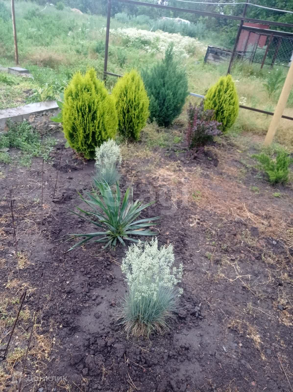 На участке много красивых уже крепких растений (сосны, березы, туи, можжевельники, кипарисы и еще много всего).