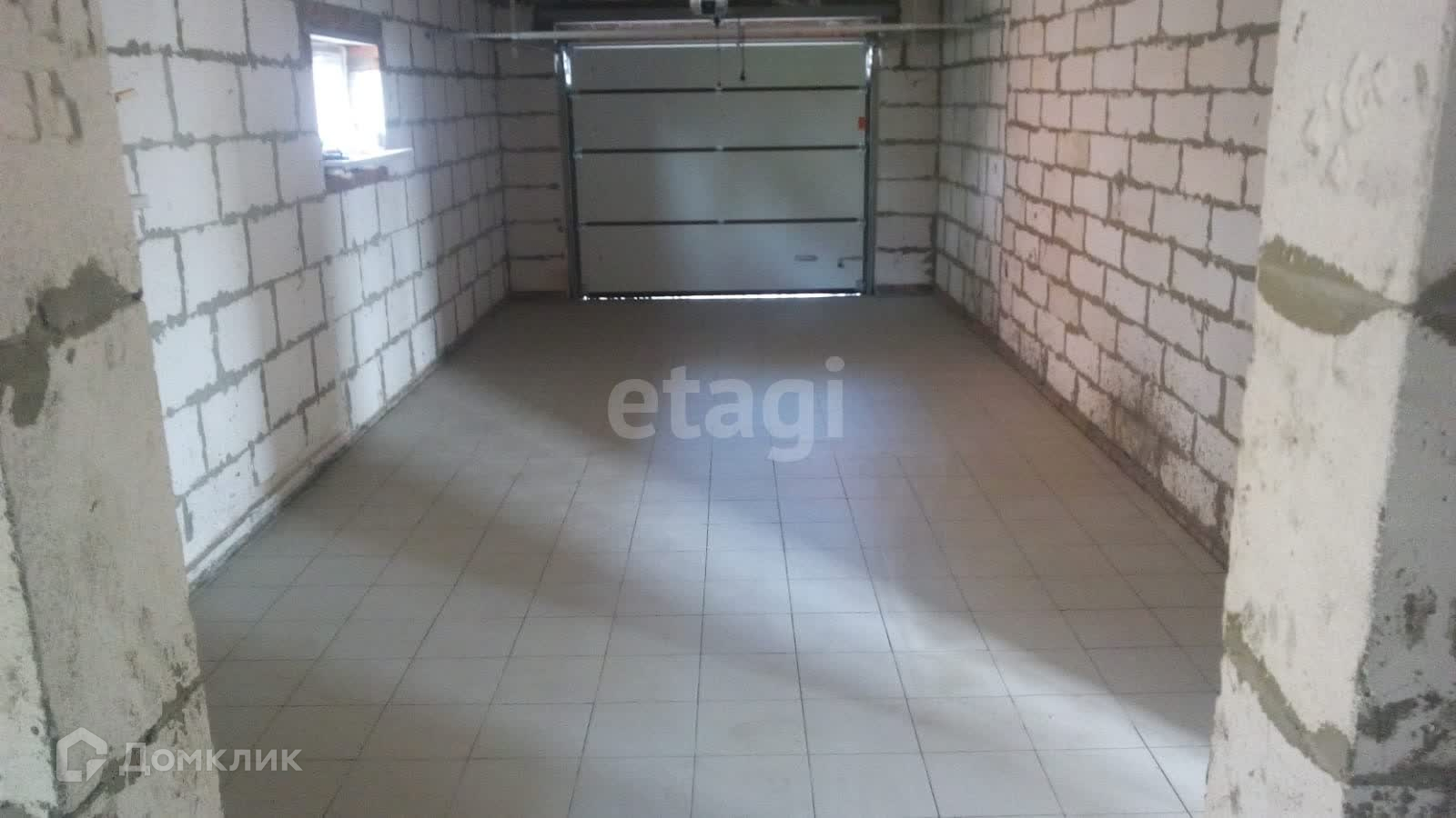 В доме теплый гараж на 2 машины с автоматическими воротами. На полу выложена плитка, стены оштукатурены под покраску.
