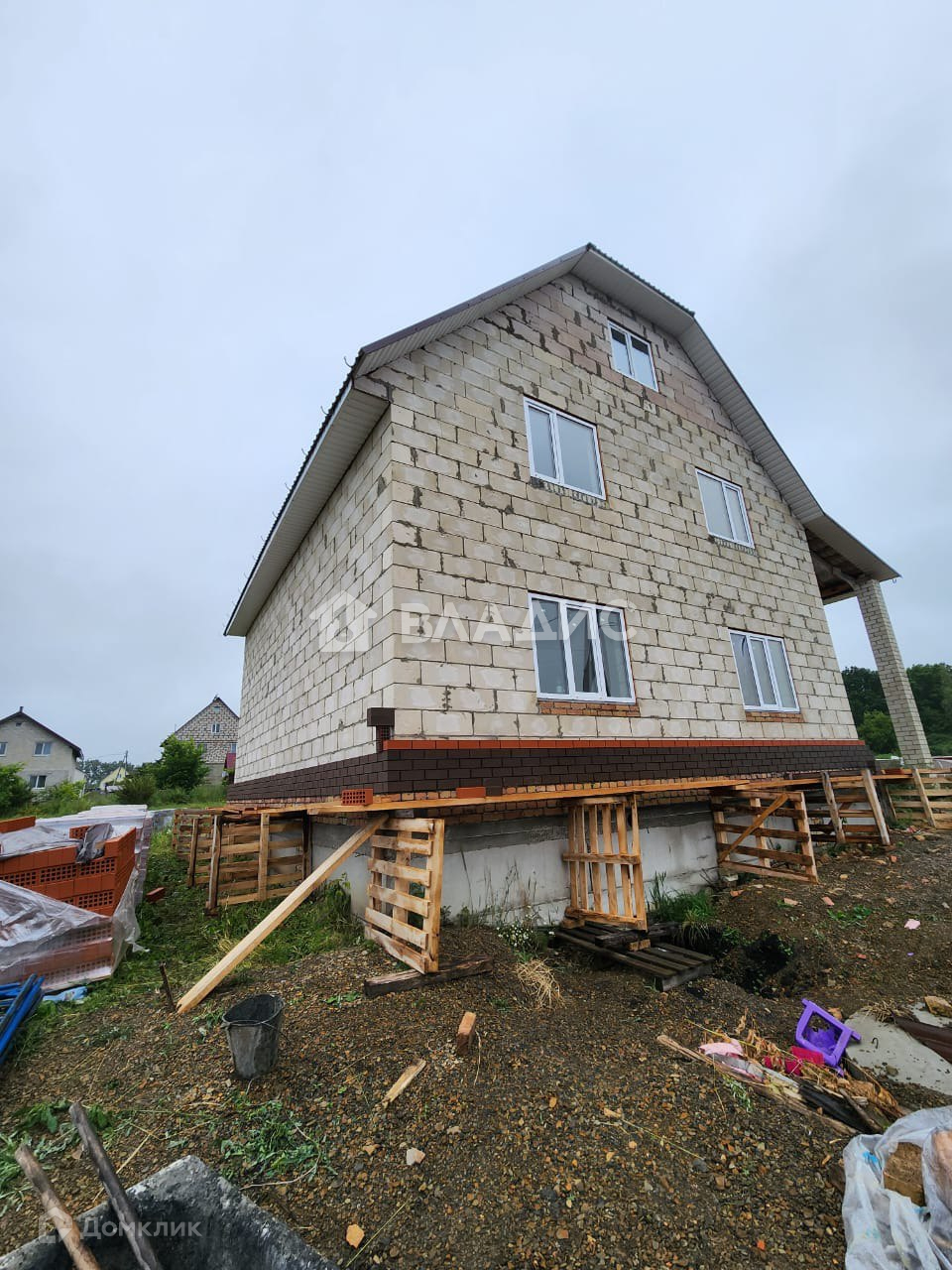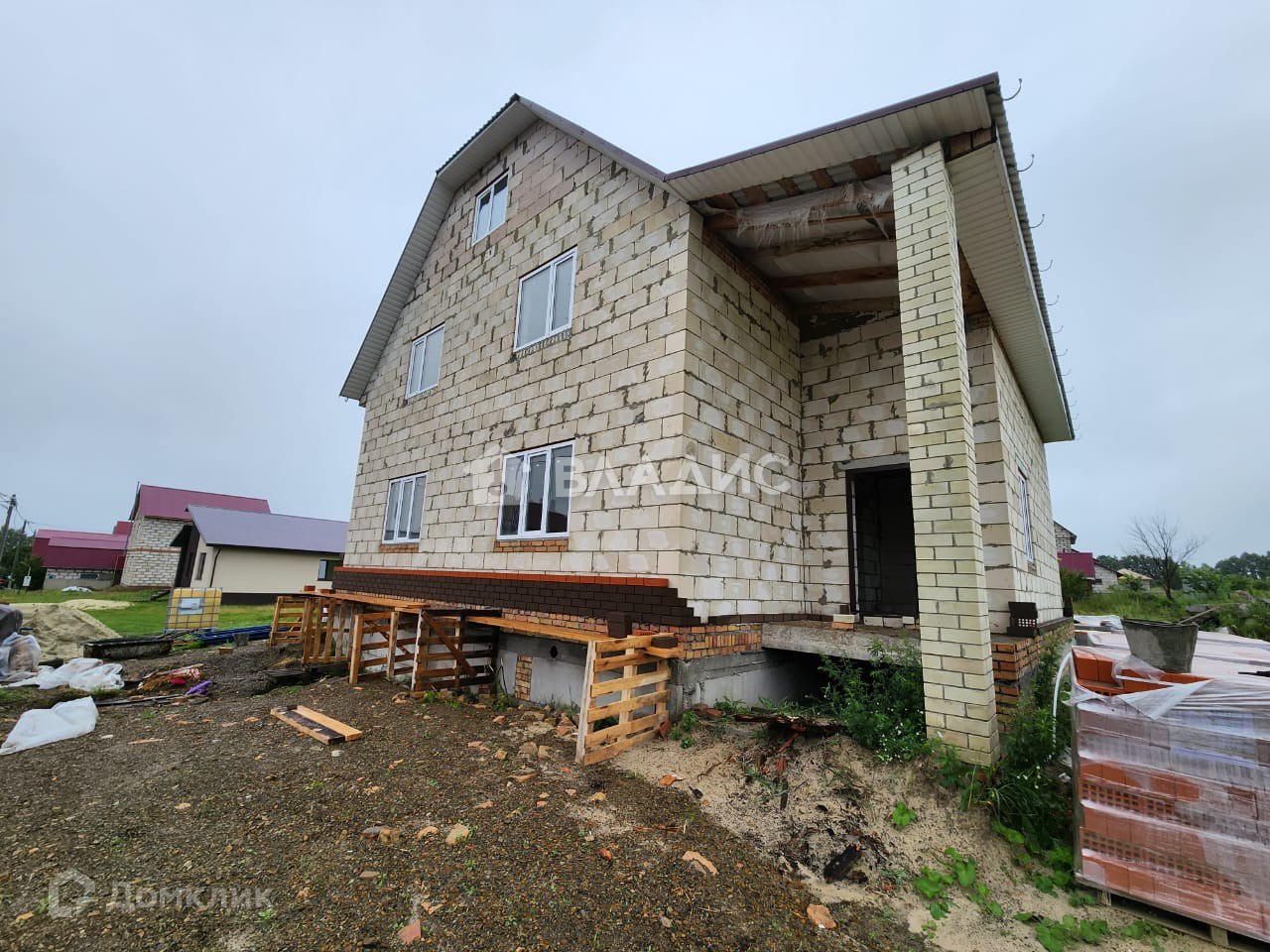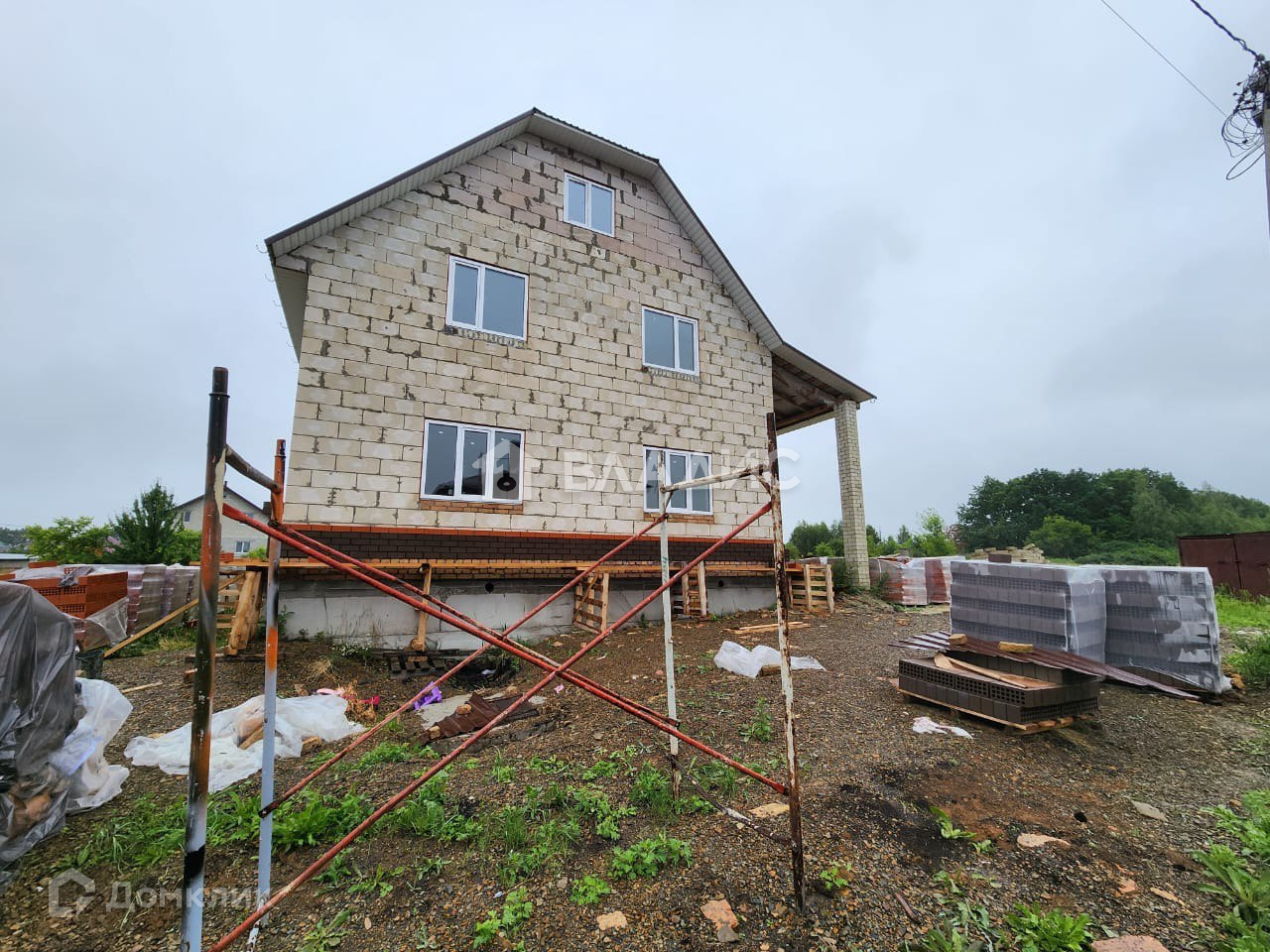 • Стены из теплоблока толщиной 300 мм. + ведется обкладка облицовочным кирпичом.