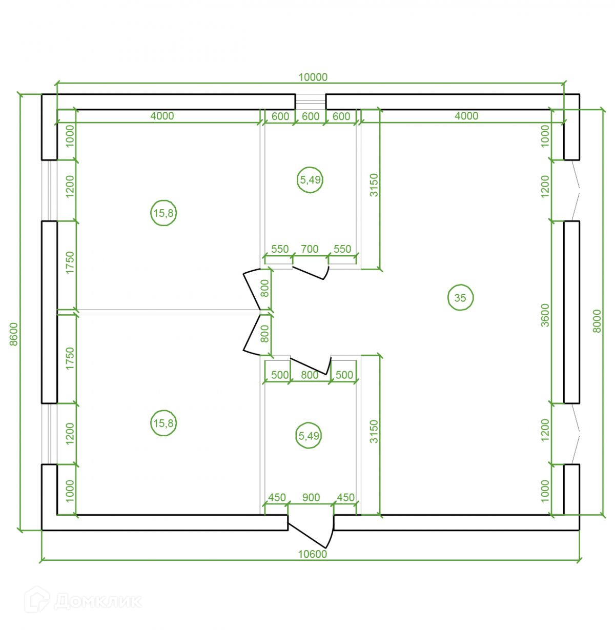 Общая площадь 80 м2