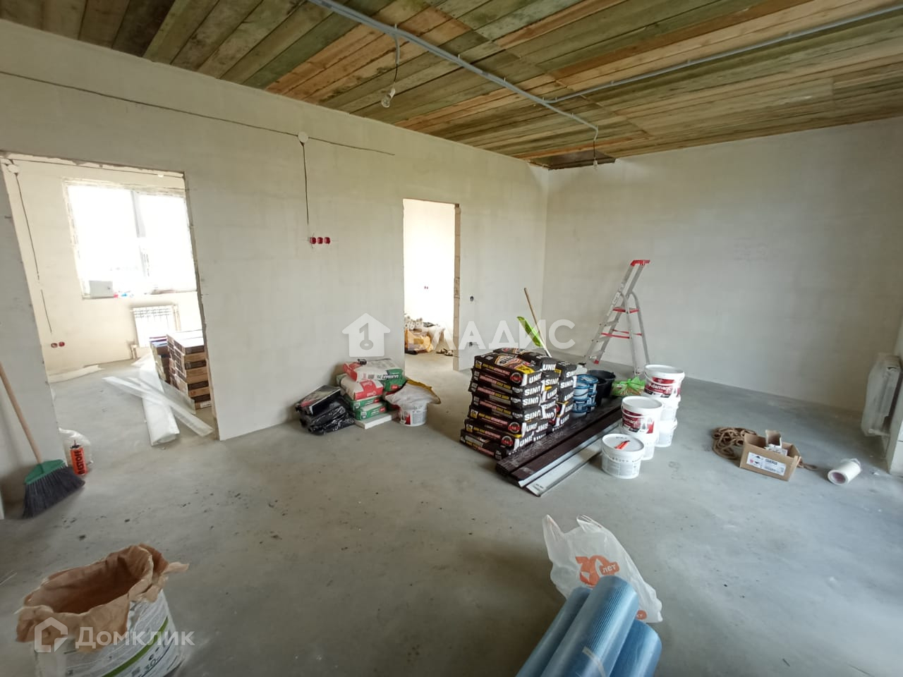 Ремонт чистовой первого этажа: теплый пол и уложен ламинат, стены обои на ваш выбор и натяжные потолки.