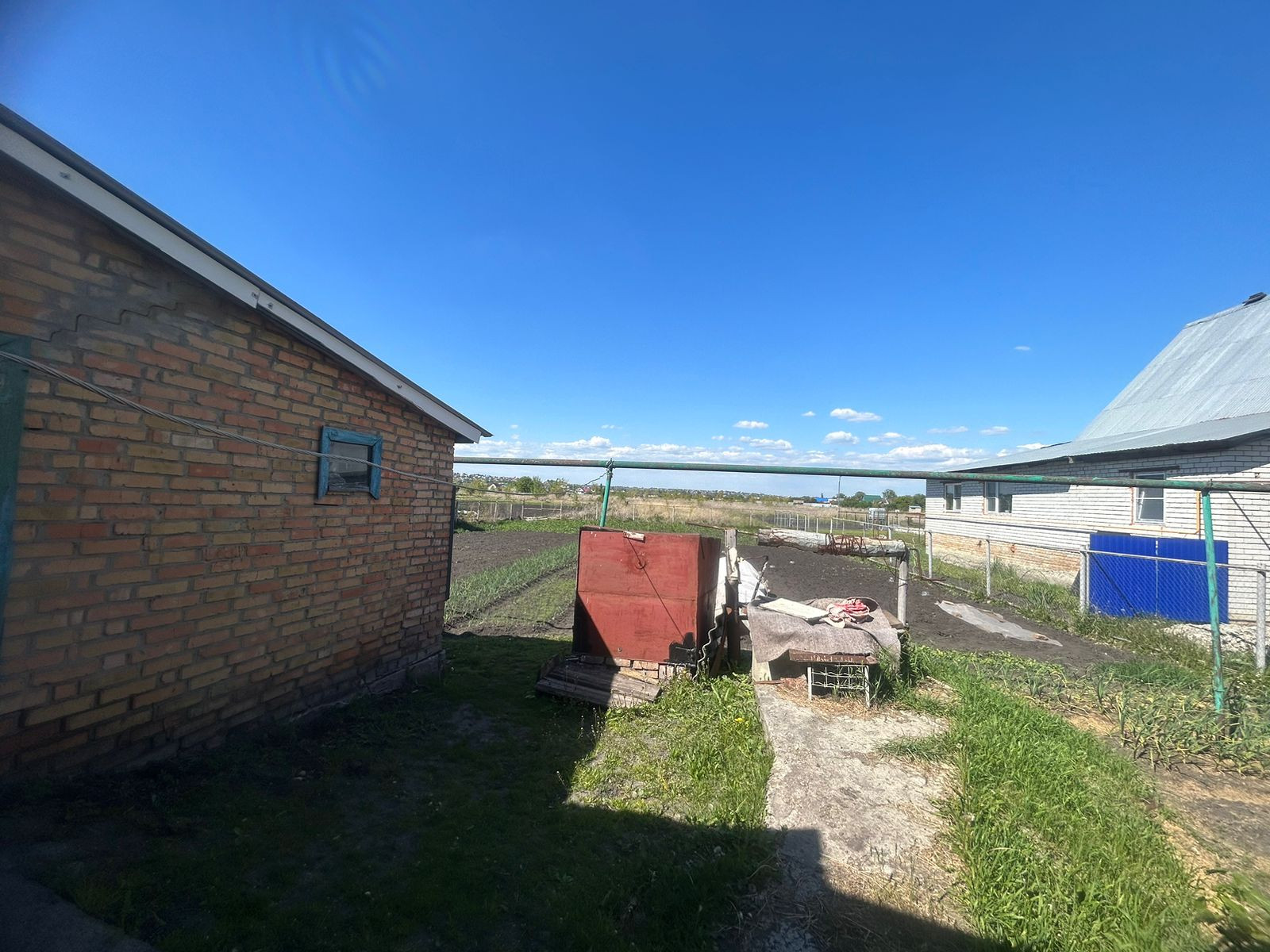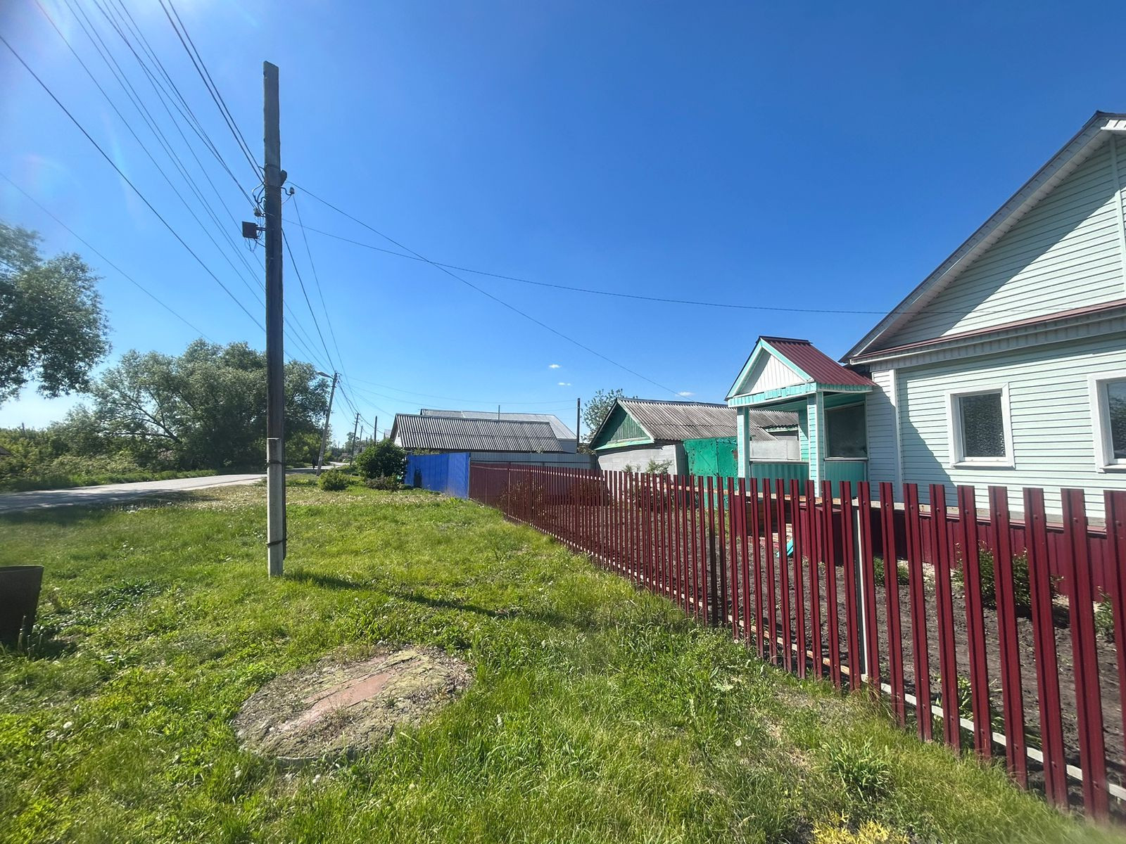 Территория возле дома огорожена забором, есть надворные постройки. Дом расположен на первой линии от дороги, хороший подъезд, асфальт.
