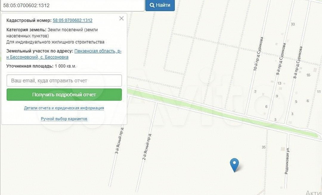 В продаже участок 10 соток ИЖС в Бессоновке кадастровый номер 58:05:0700602:1312
