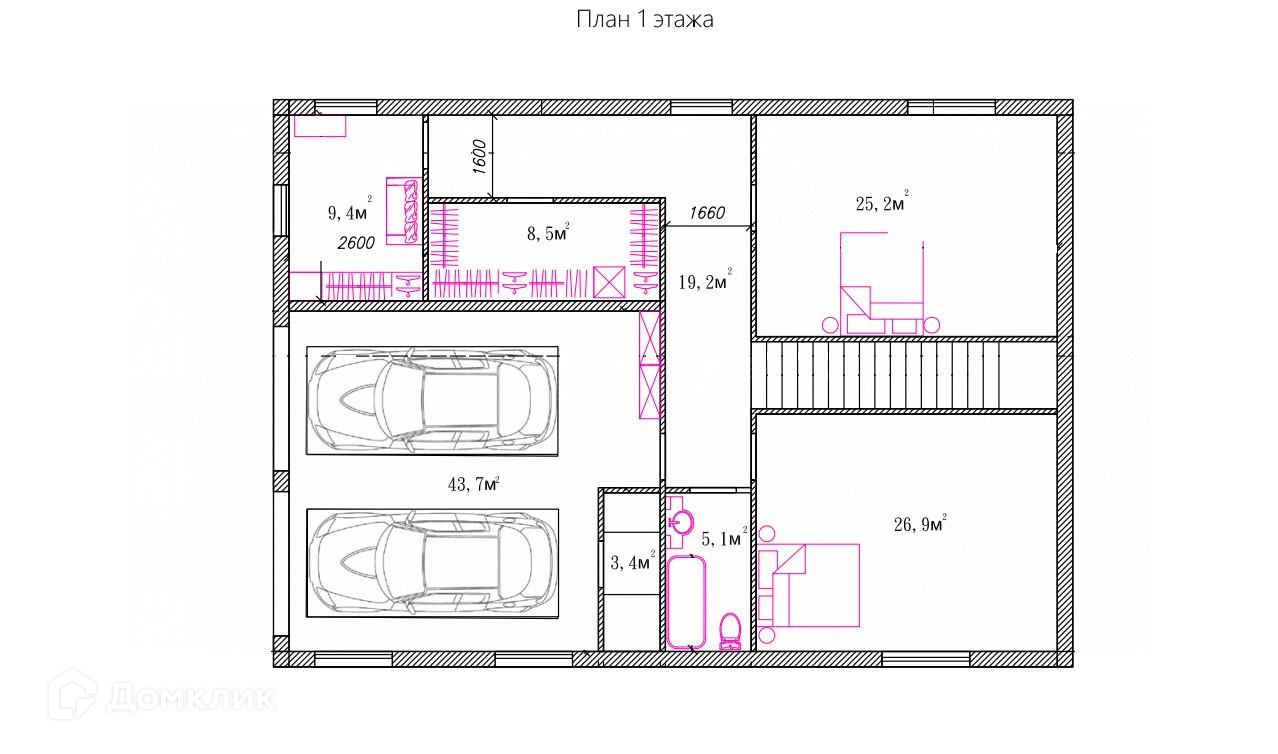 Дом включает в себя довольно вместительный гараж на 2 автомобиля, бассейн. Отделка пред чистовая. В доме два этажа, которые позволят разместиться большой и дружной семье. А бассейн принесет неподдельную радость вам и вашим детям.
