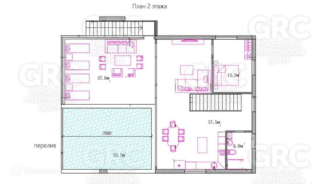 2 этаж: бассейн, четыре спальни, два санузла, кухня-гостиная.