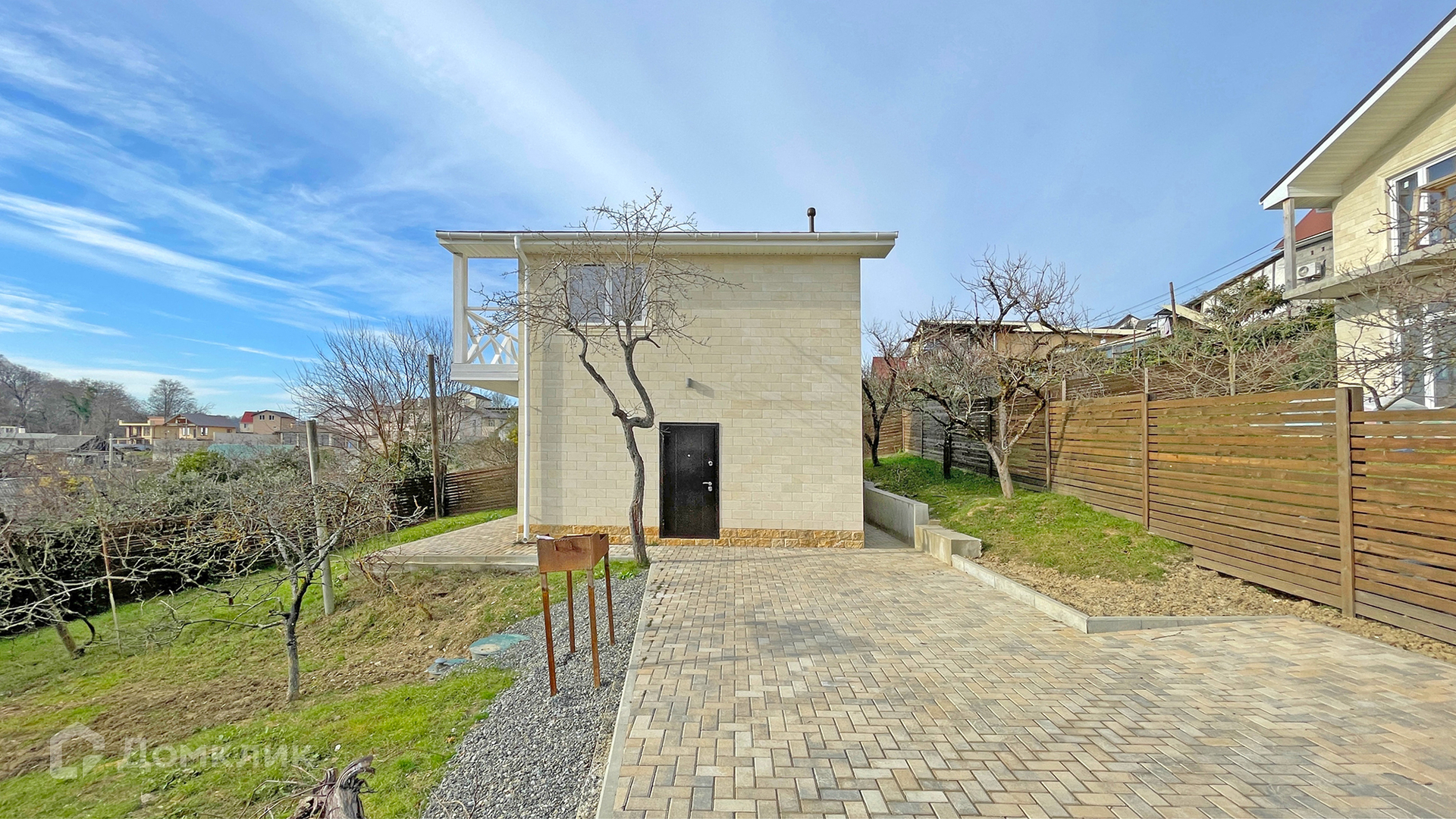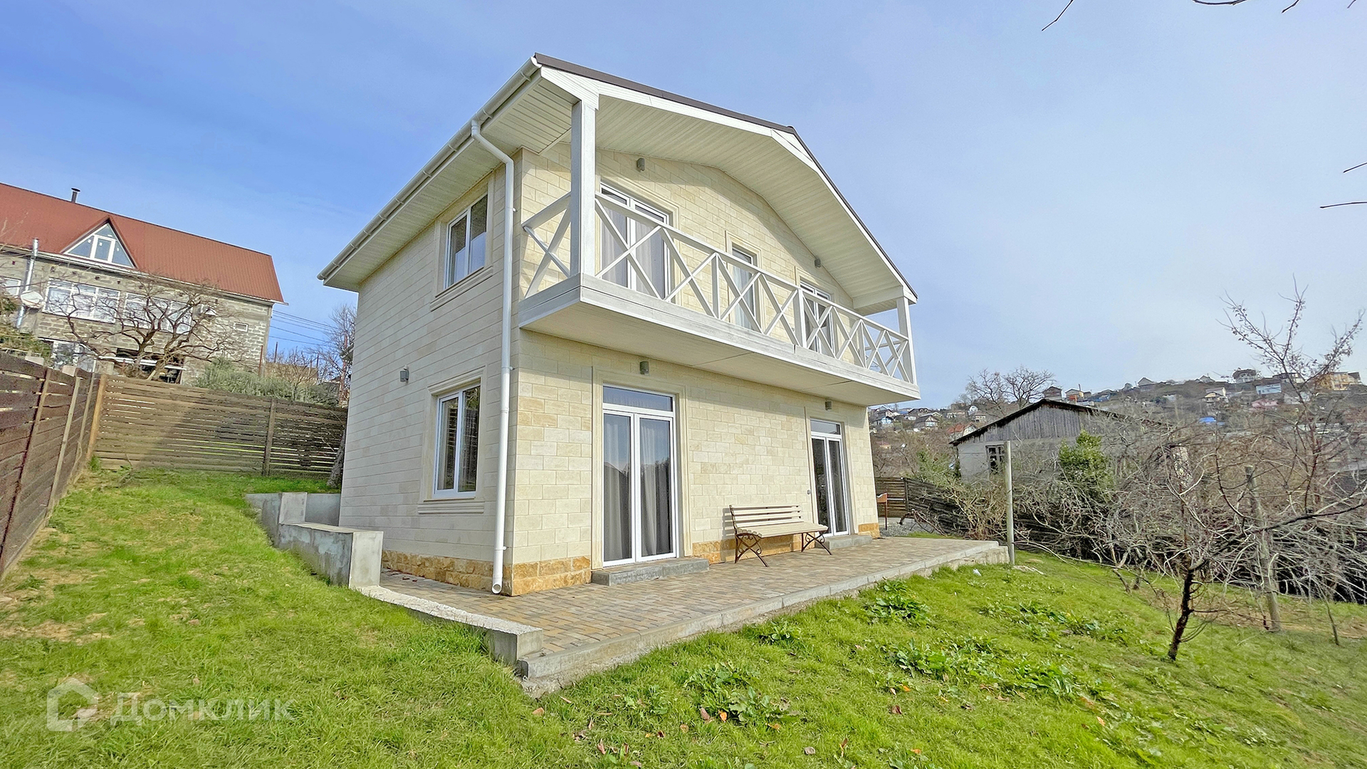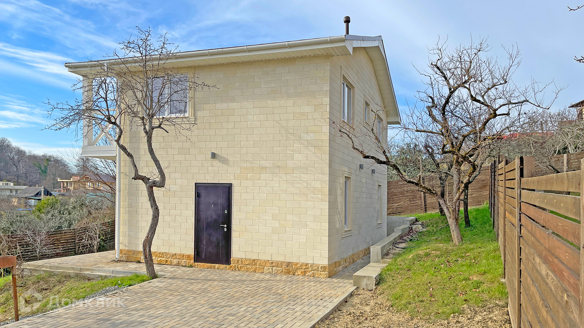 К дому ведет новая асфальтированная дорога. Рядом в пешей доступности остановка общественного транспорта и новый магазин "Магнит". Со второго этажа открываются прекрасные виды на море и долину поселка. На участке растут плодовые деревья. Ходит школьный автобус.