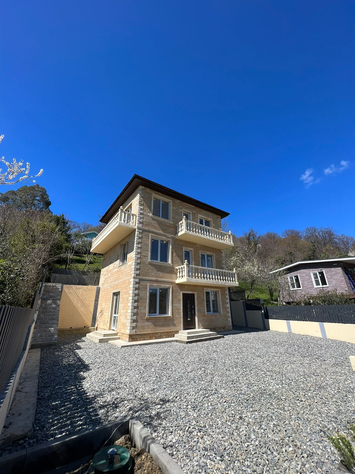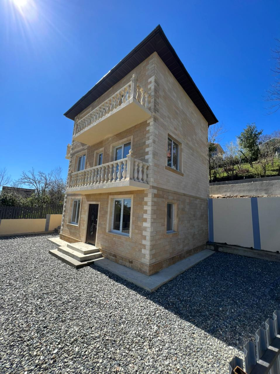 160 м2  3 этажа , балконы . Потрясающий вид на горы и море.