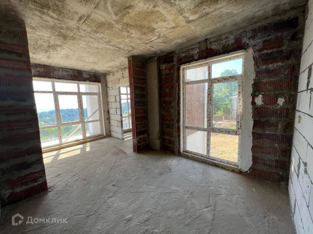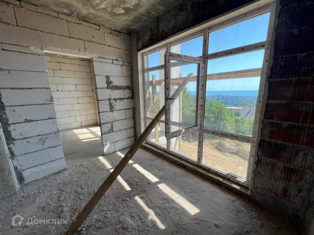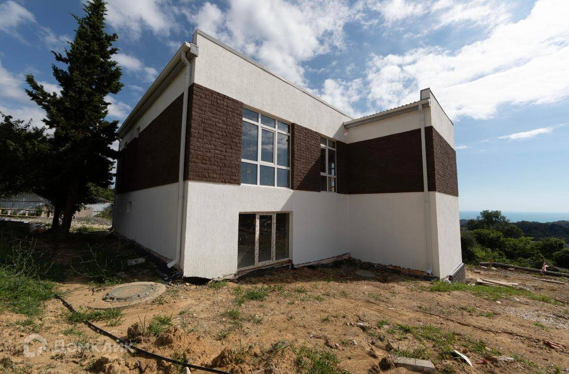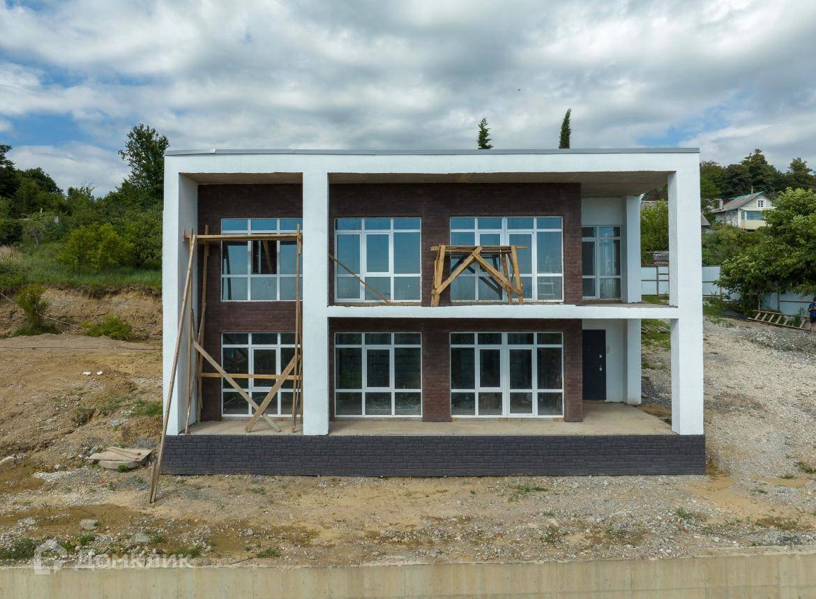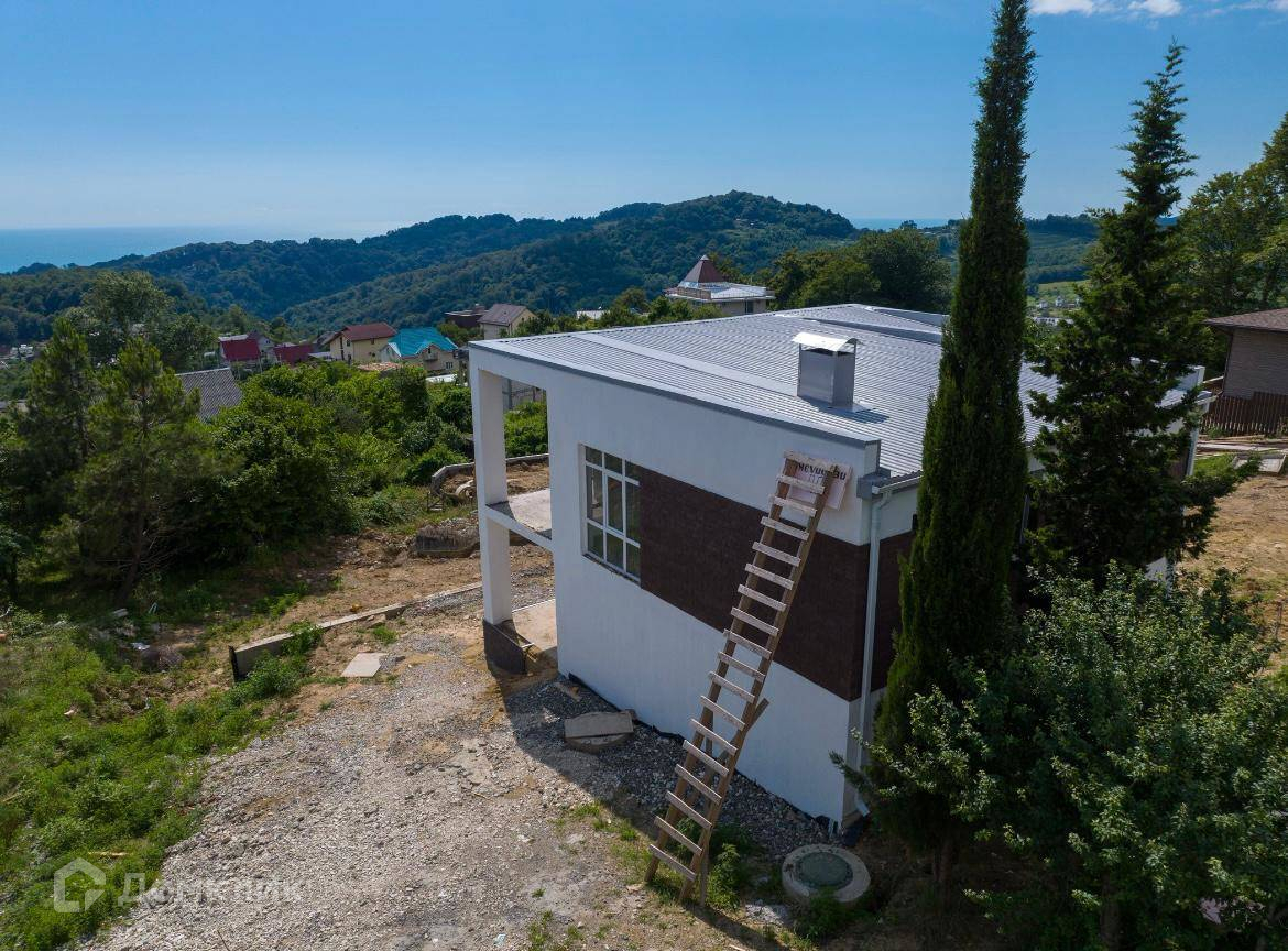Продается дом в Адлере. Шикарные витражные окна в пол. Практически ровный участок. Прекрасный вид на лес, зелень и море. Тихое и уютное место.