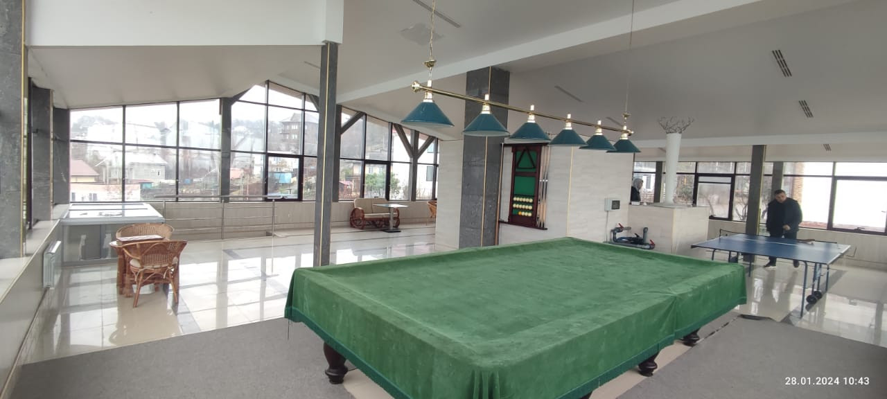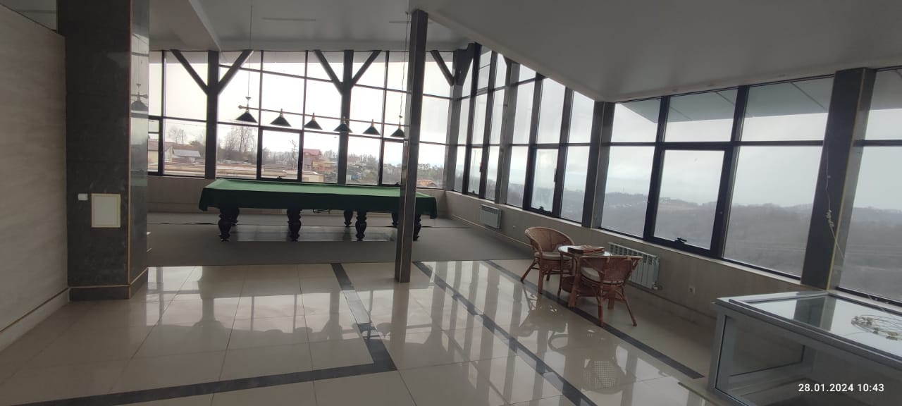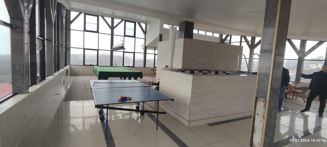 На застекленной мансарде бассейн, баня, санузел, бильярдная