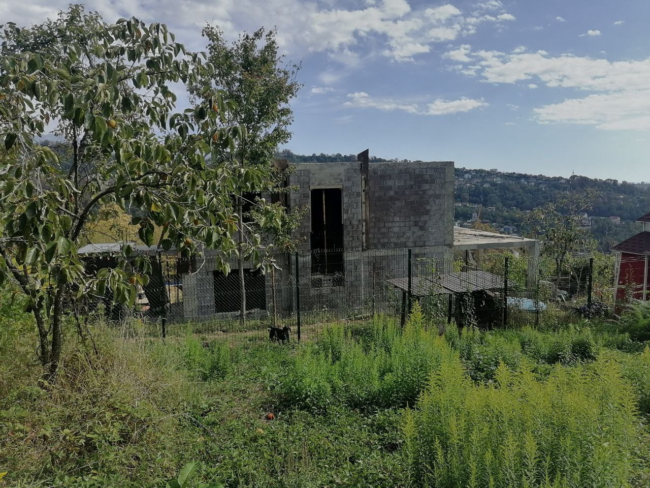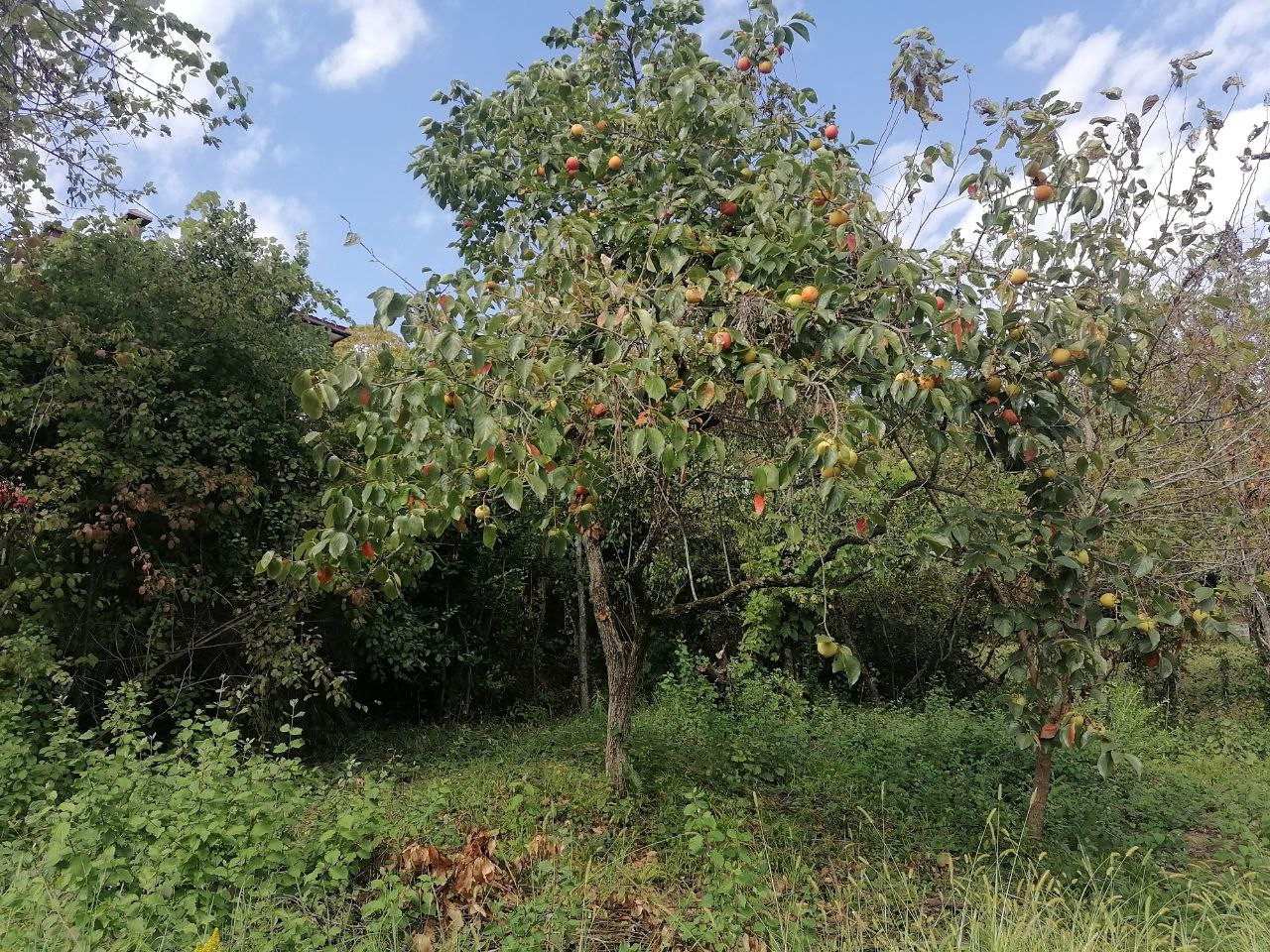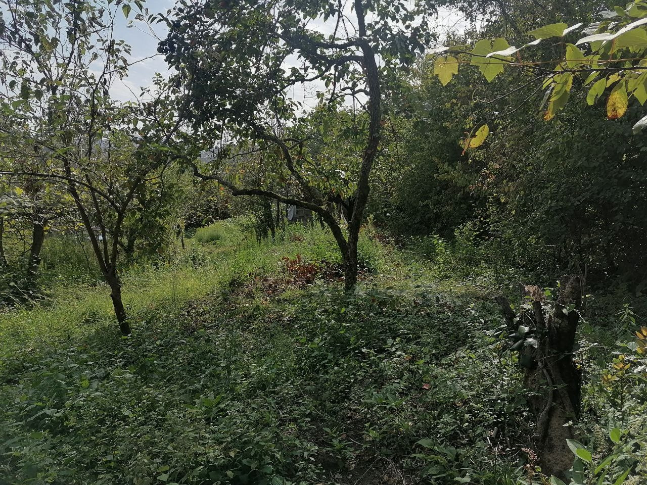 участок с наклоном, есть старый дом. Растет инжир, хурма, яблони.
