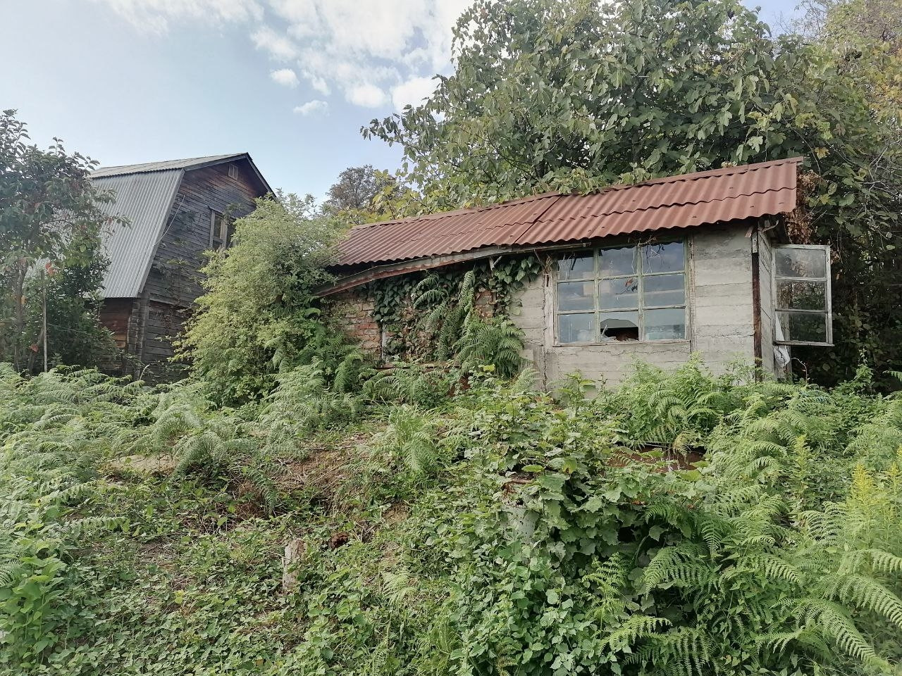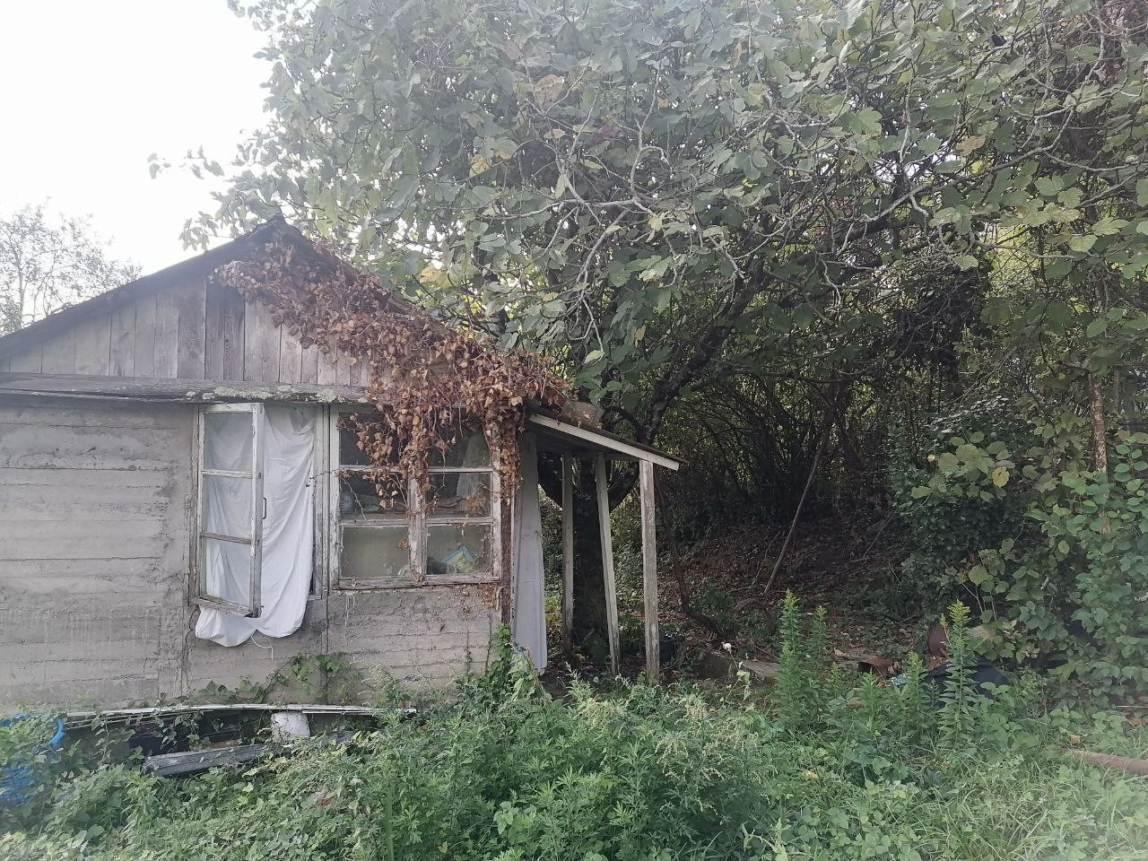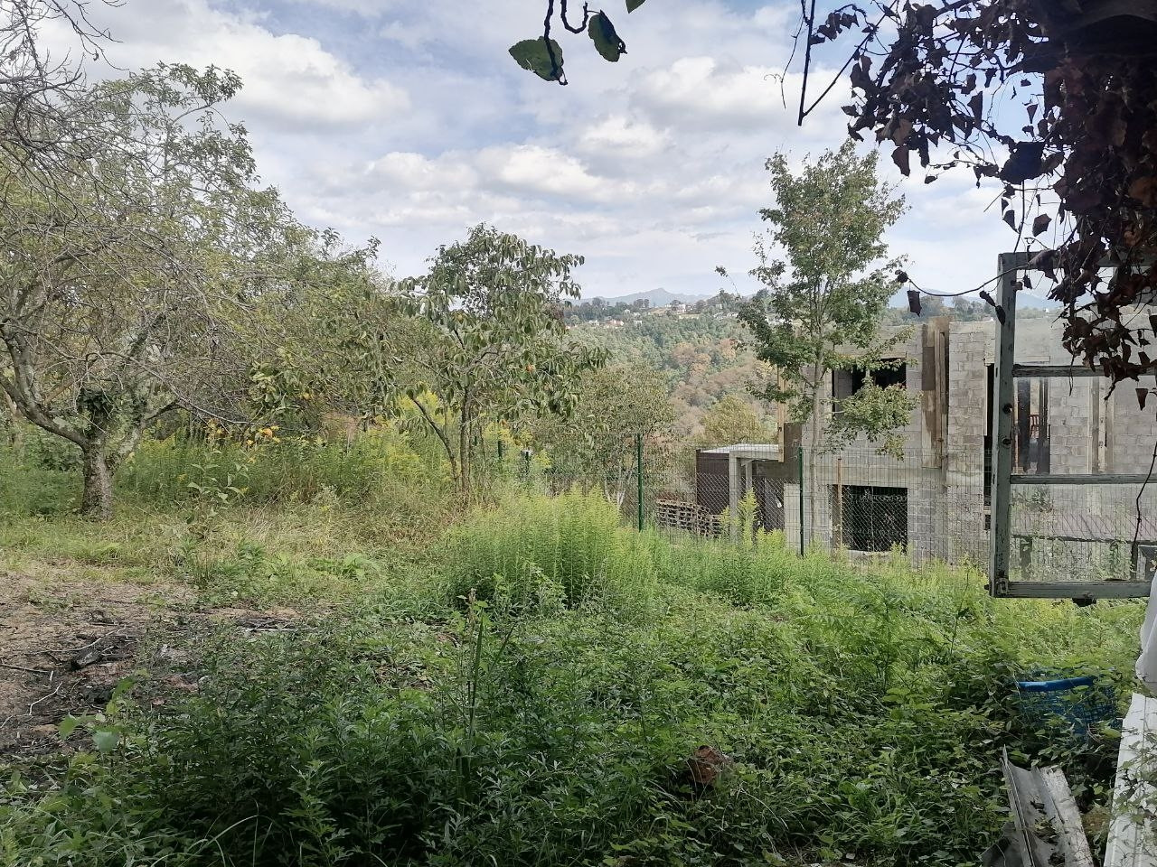 участок с наклоном, есть старый дом. Растет инжир, хурма, яблони.