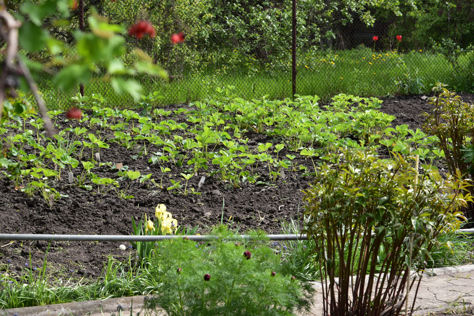 На участке имеются плодовые деревья и кустарники, виноград, клубника.