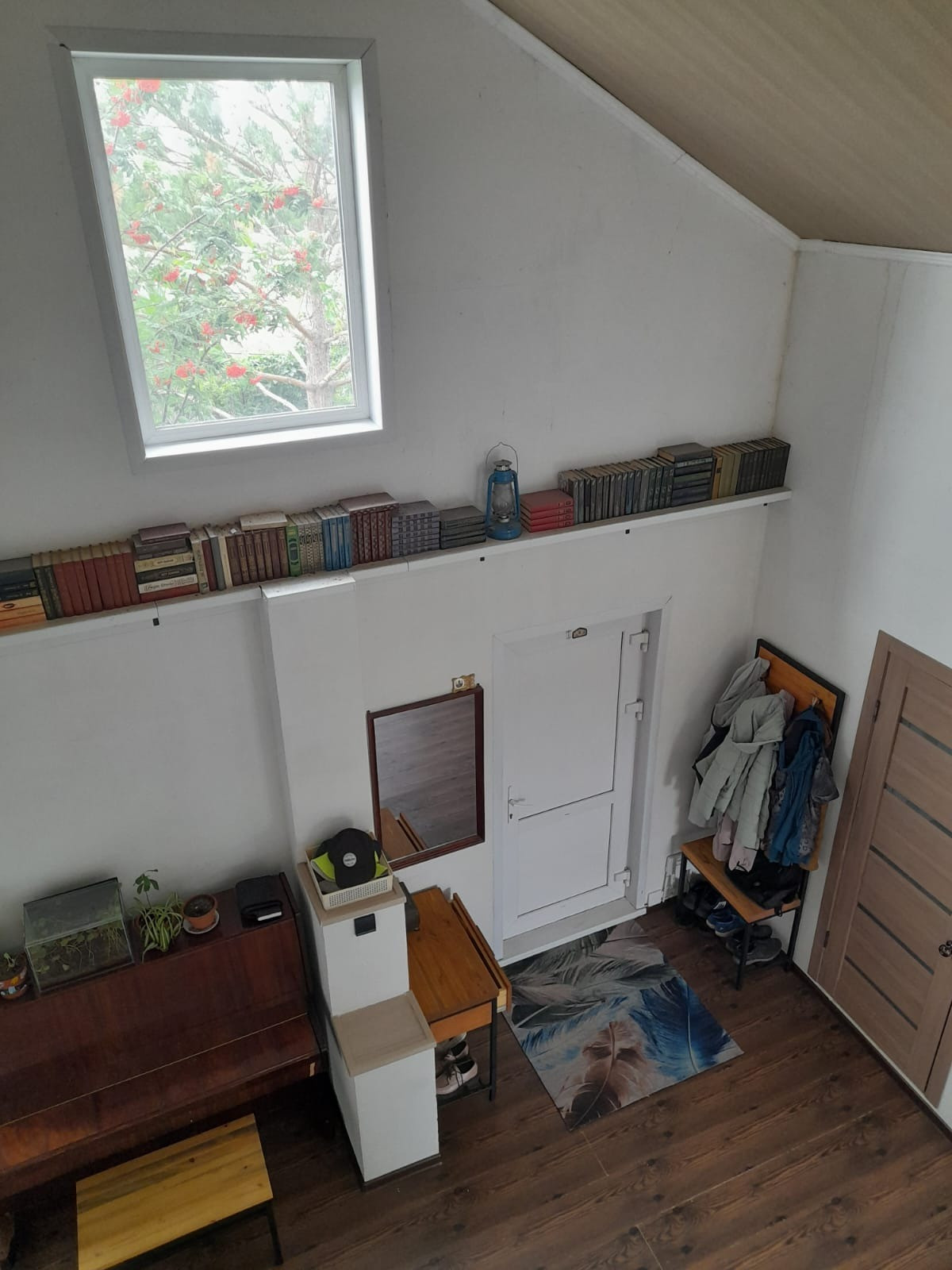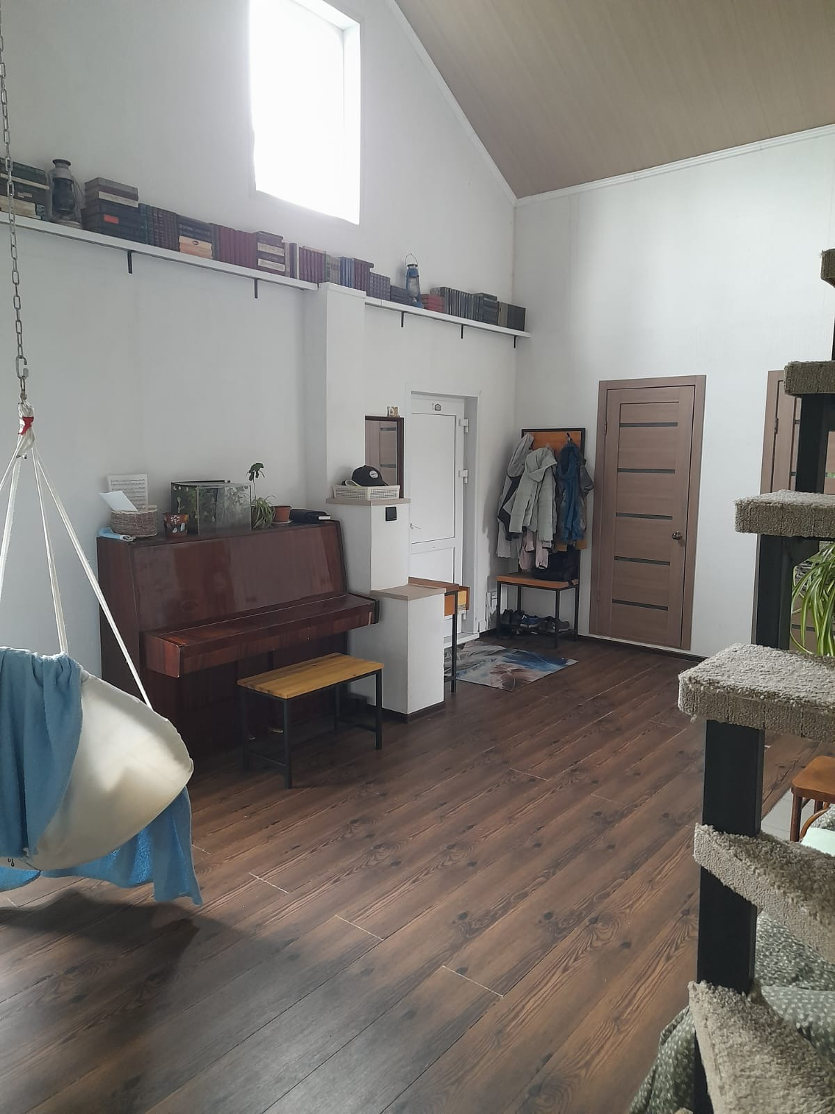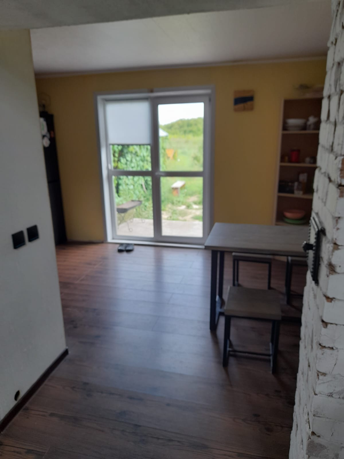 - Стены ободраны до бревна, сделана перепланировка. Обшито гипсокартоном.