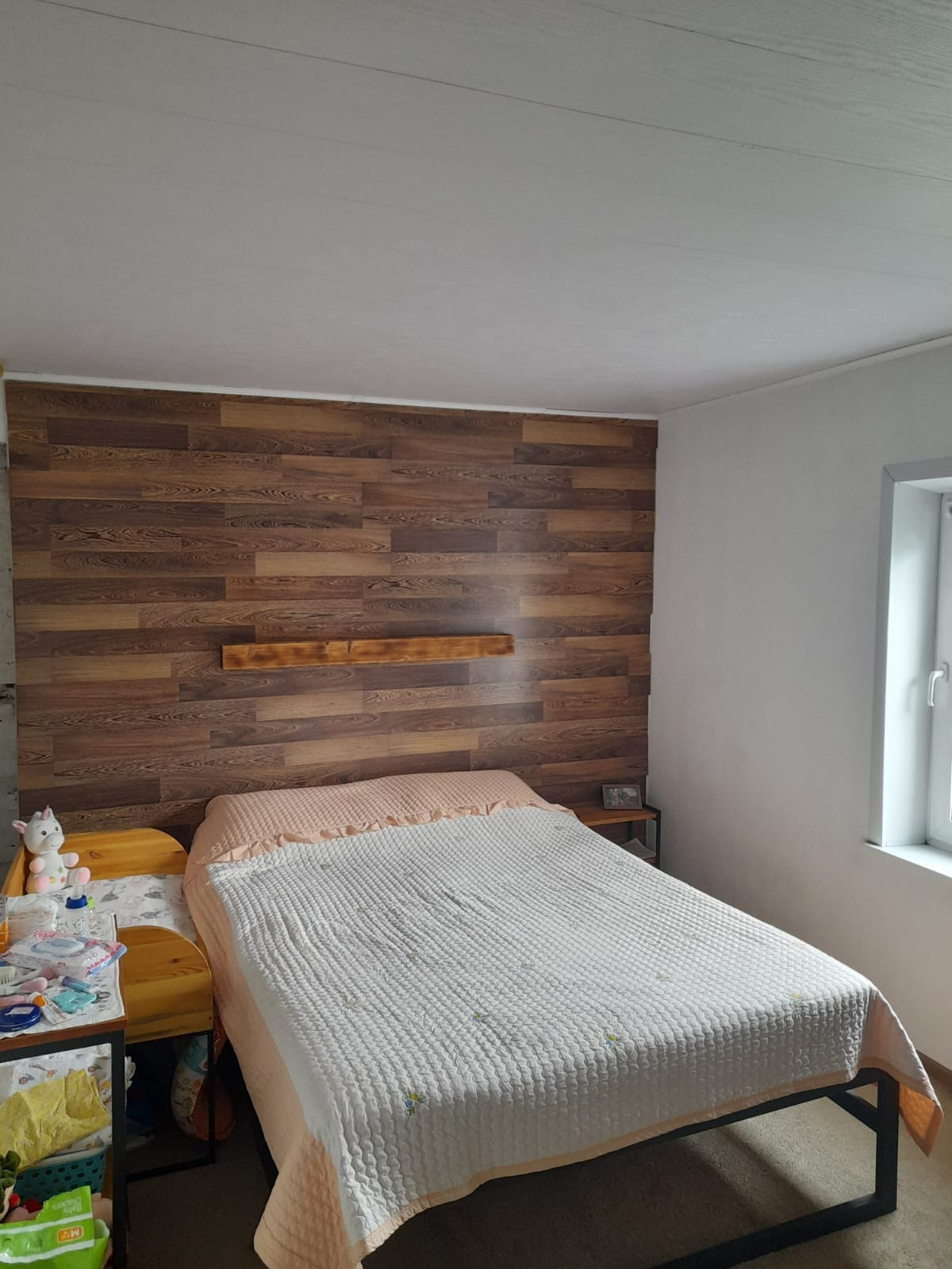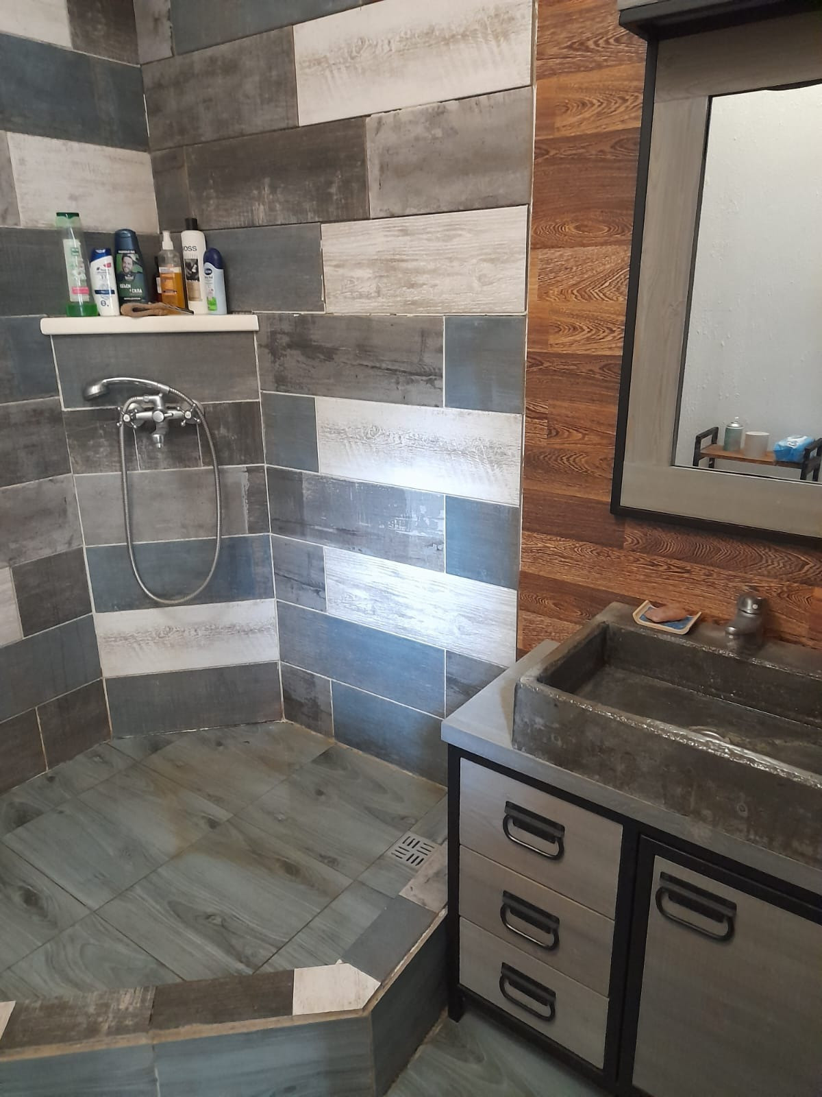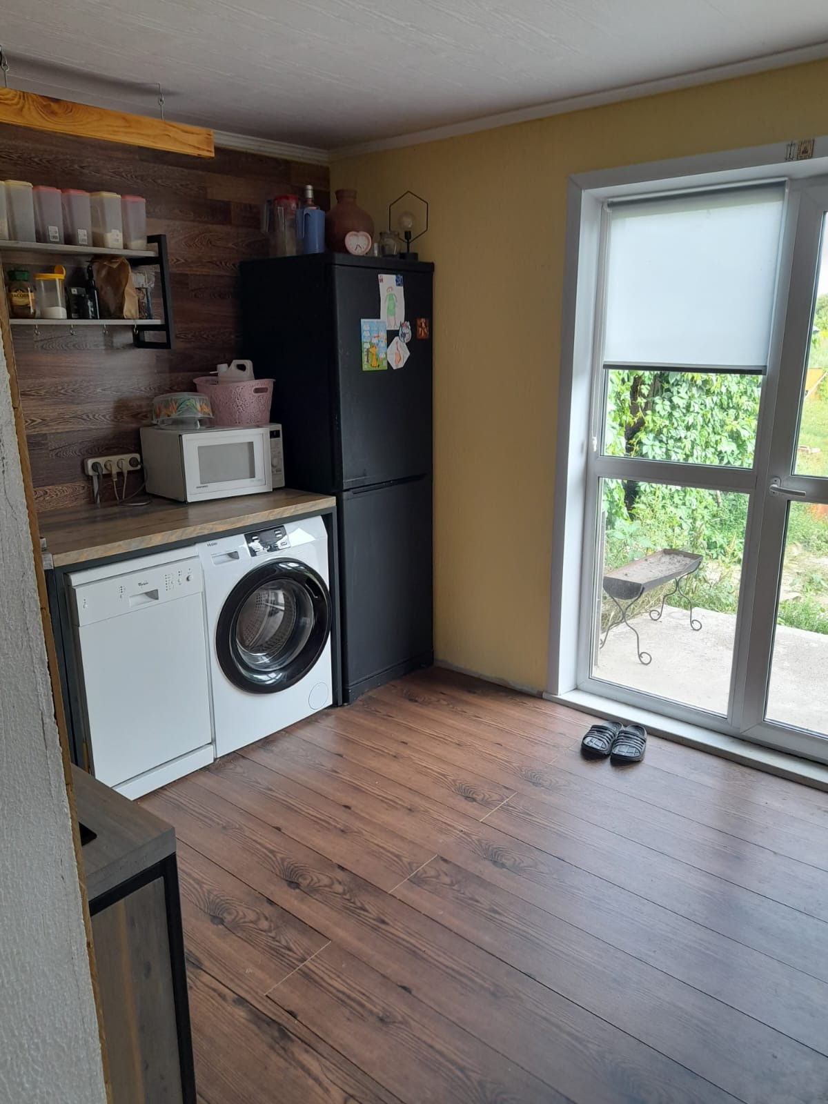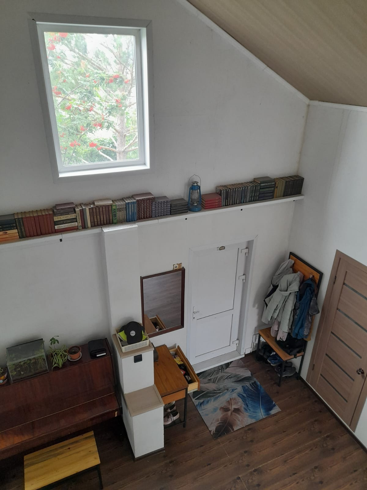 - Стены ободраны до бревна, сделана перепланировка. Обшито гипсокартоном.