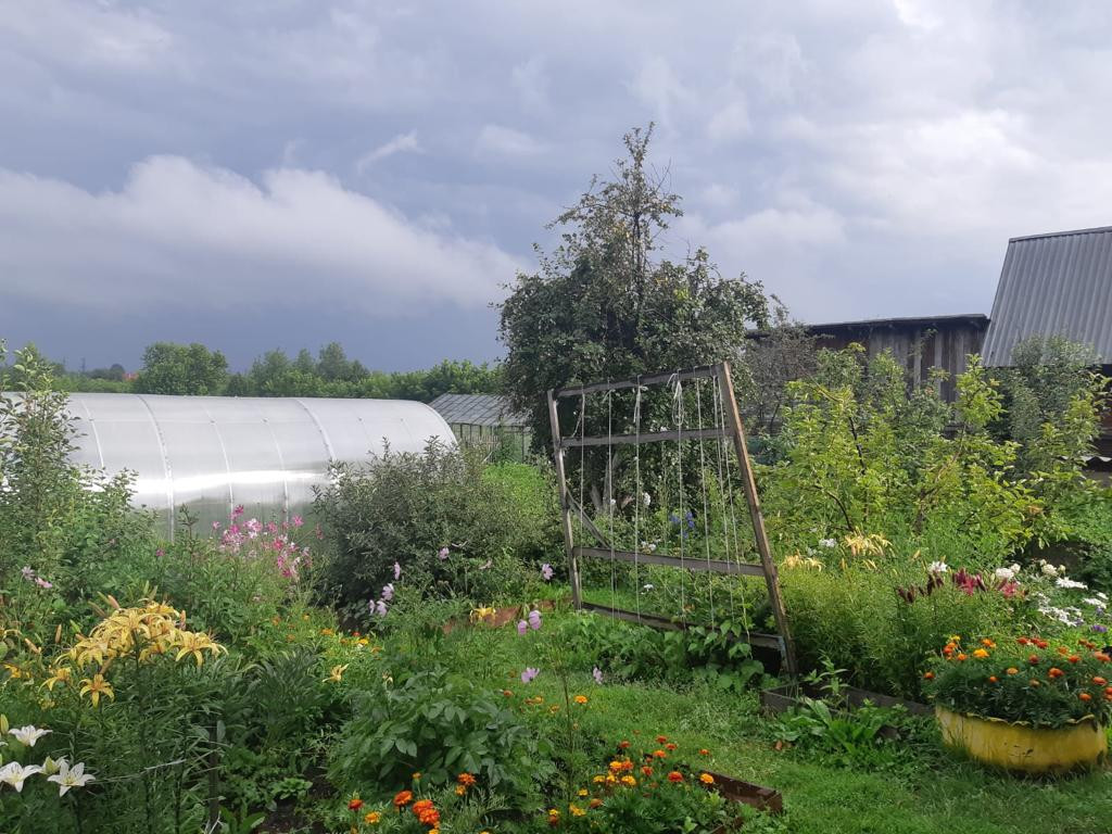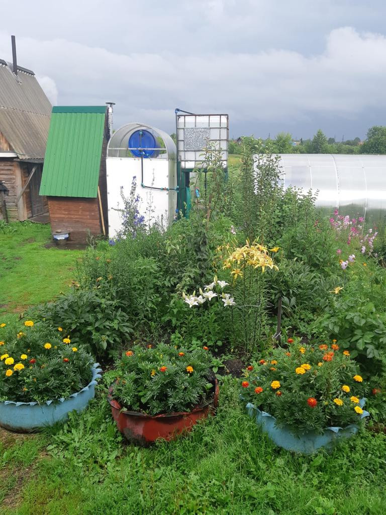 — На территории есть баня, туалет, погреб, углярка, 2 теплицы, мастерская и большой хозяйственный блок.