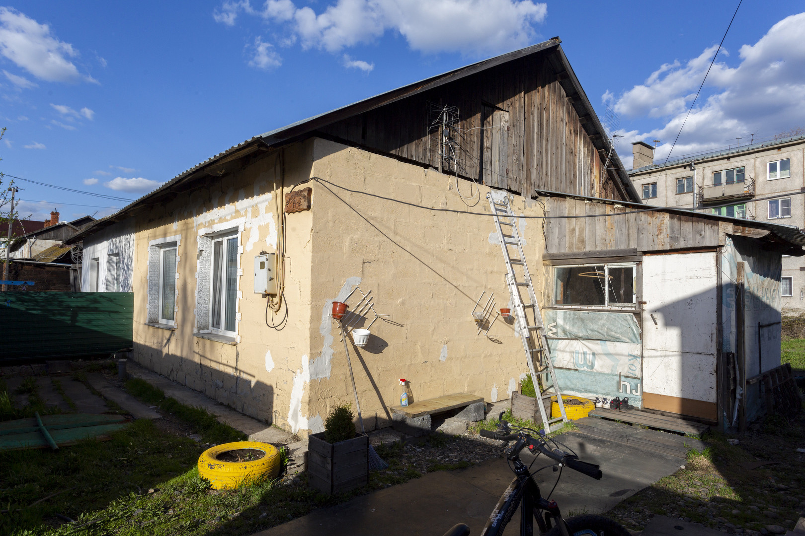 Есть гараж на две машины. Придомовая земля, где можно посадить плодовые, огородные культуры и цветы.